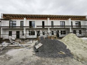 – Зовні котеджі будуються з цегли + утеплений 10 пінопластом, дах утеплений-односкатний – покритий фальцевою покрівлею, вікна шестикамерні, якісні вхідні двері.