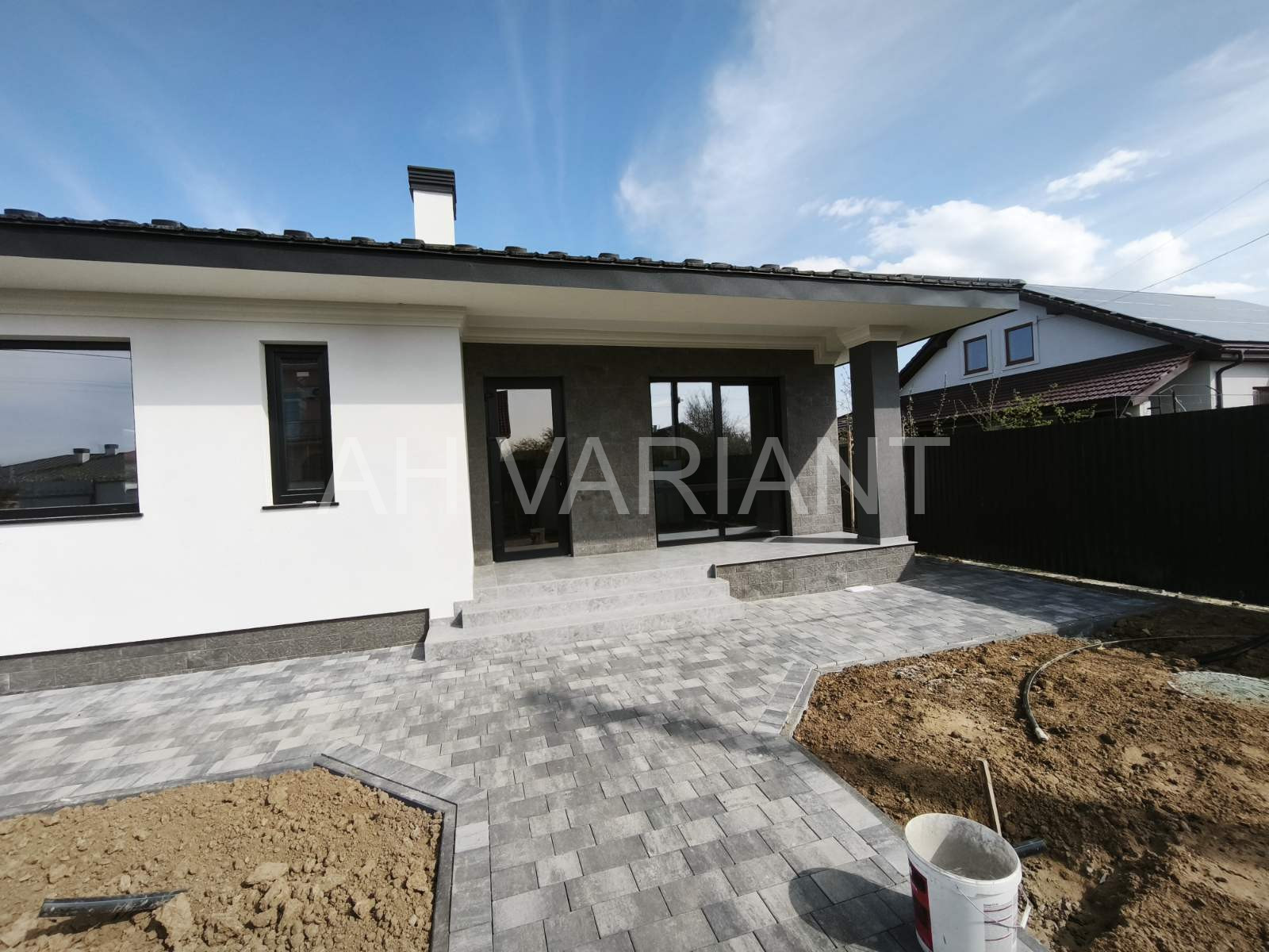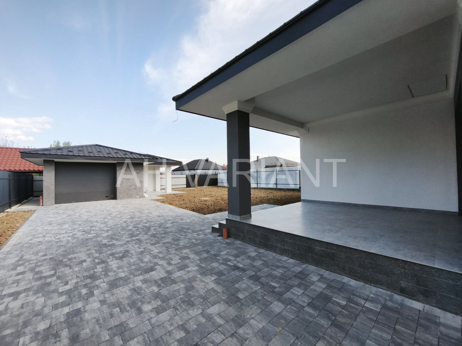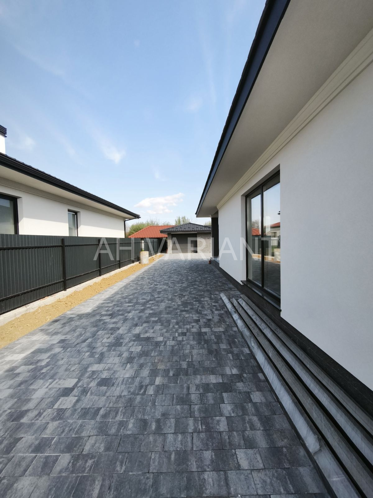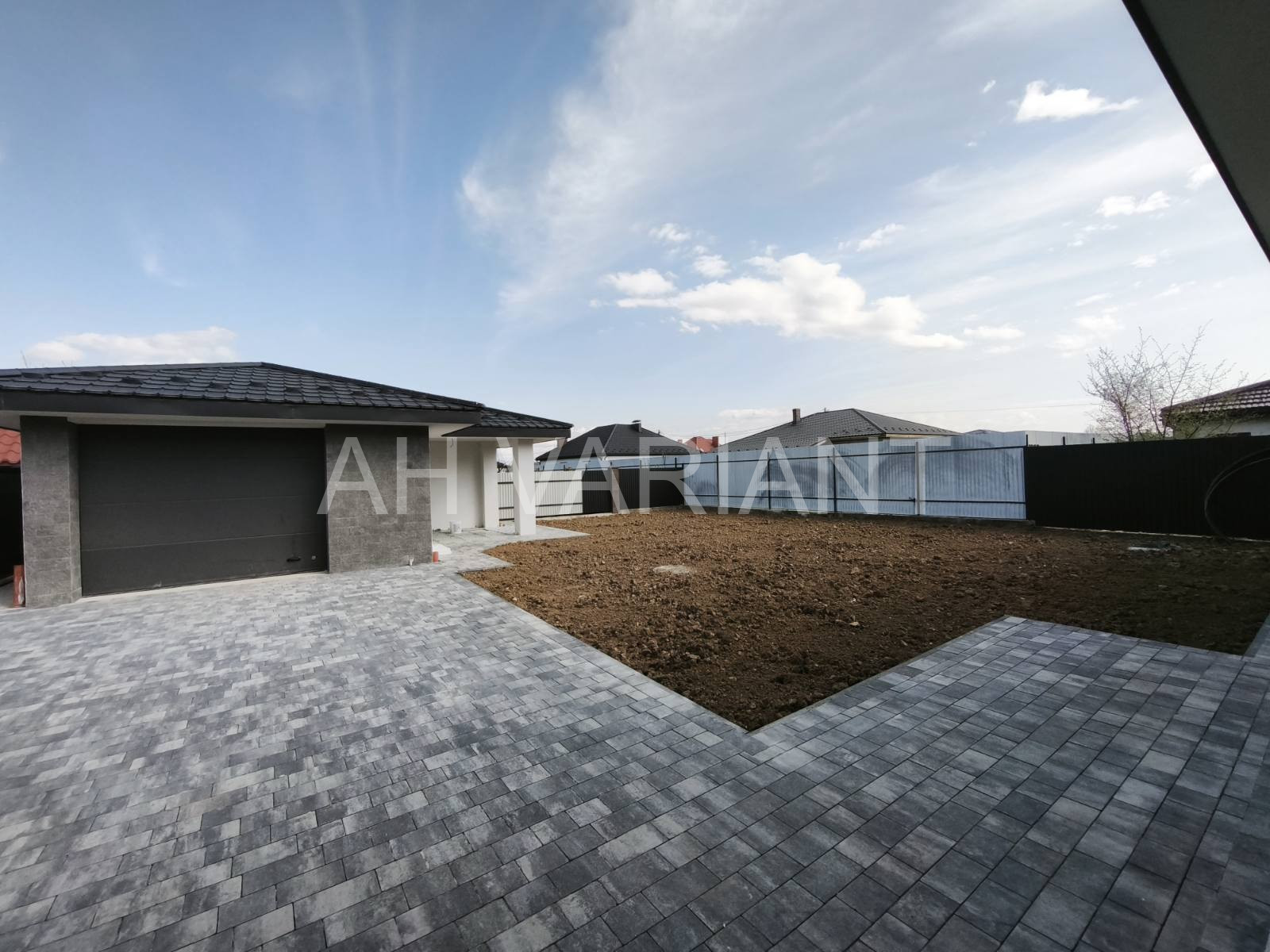 Територія на подвір’ї викладена бруківкою, озеленена, встановлено паркан від сусідів та центральний паркан із каліткою і воротами на автоматиці. Додатково на території встановлений гараж з автоматикою та крита альтанка, до неї підведено світло і воду.