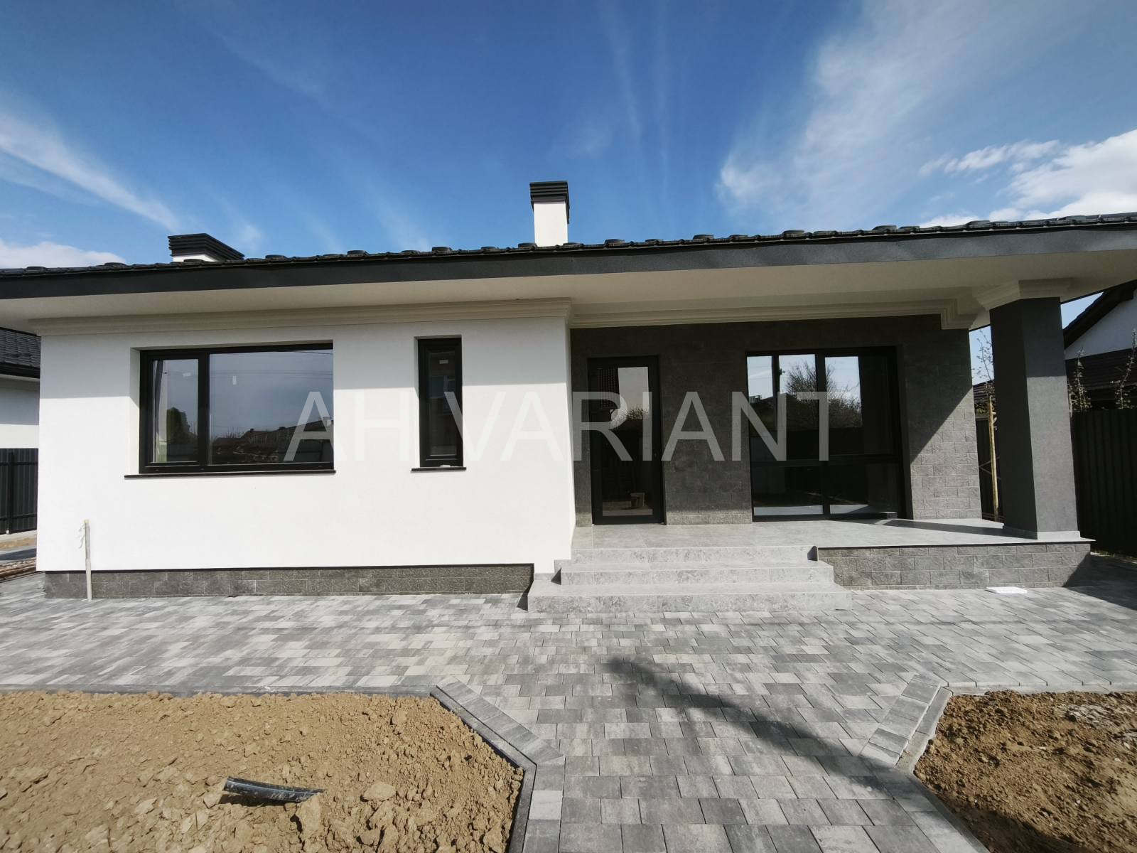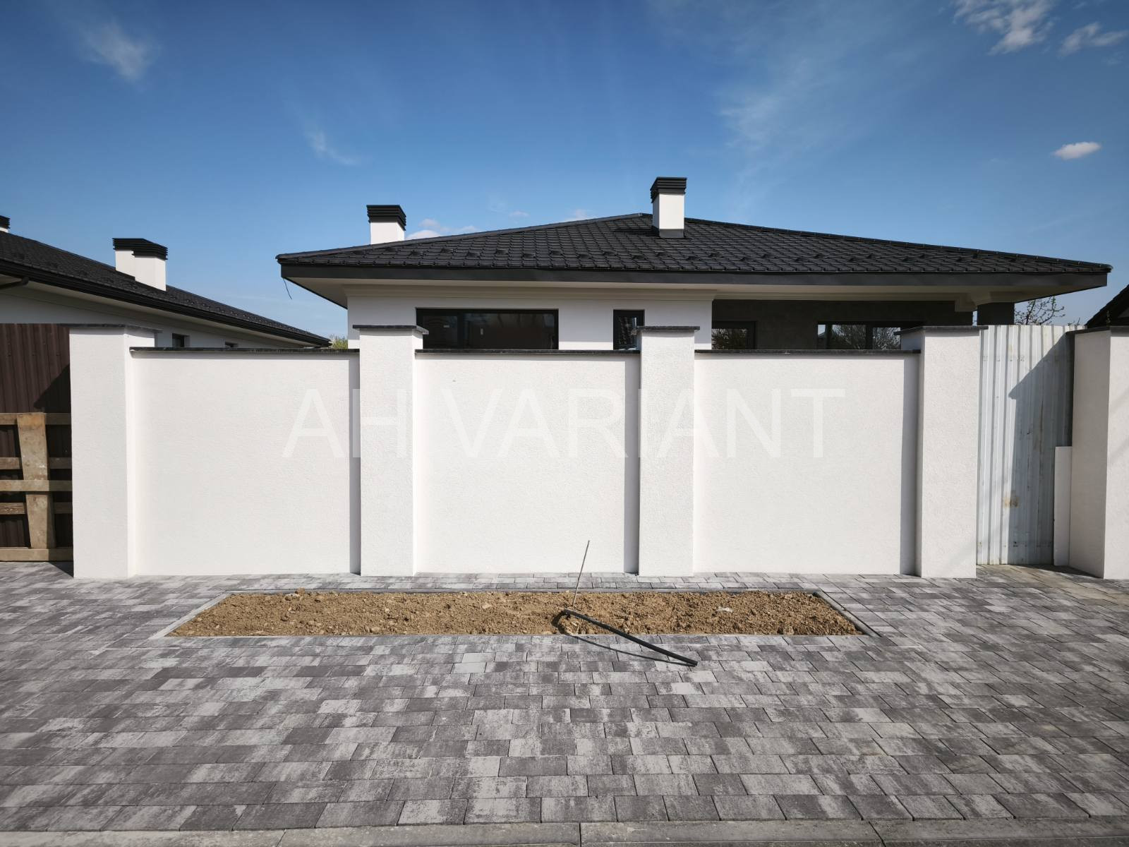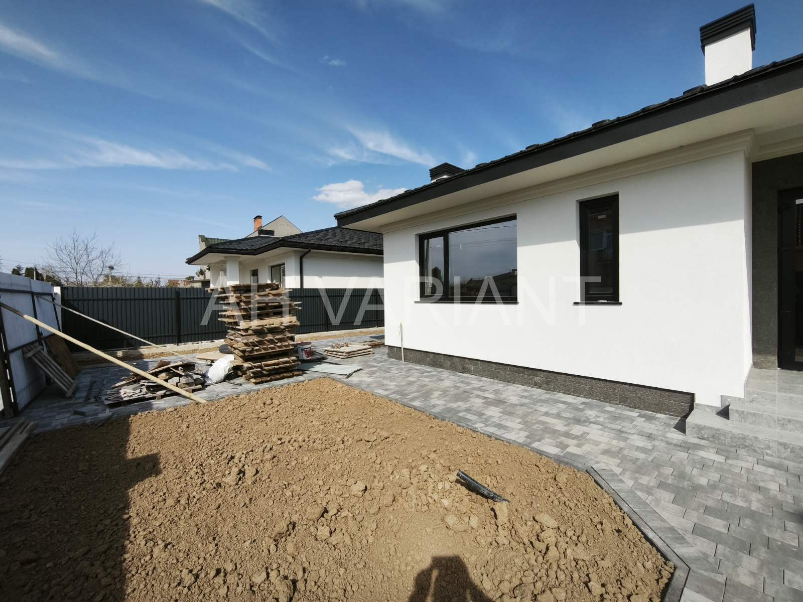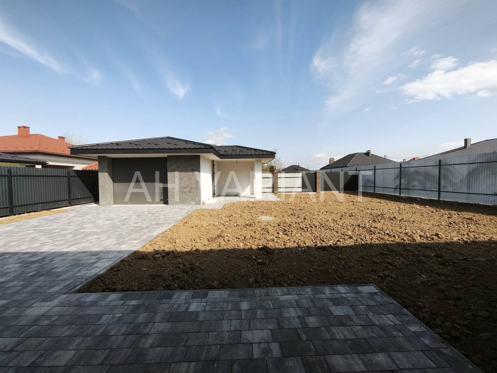 Територія на подвір’ї викладена бруківкою, озеленена, встановлено паркан від сусідів та центральний паркан із каліткою і воротами на автоматиці. Додатково на території встановлений гараж з автоматикою та крита альтанка, до неї підведено світло і воду.