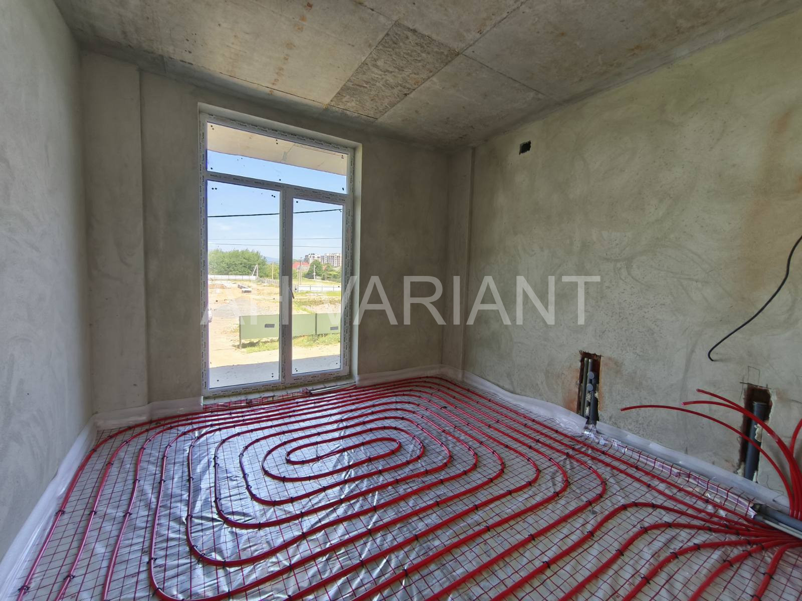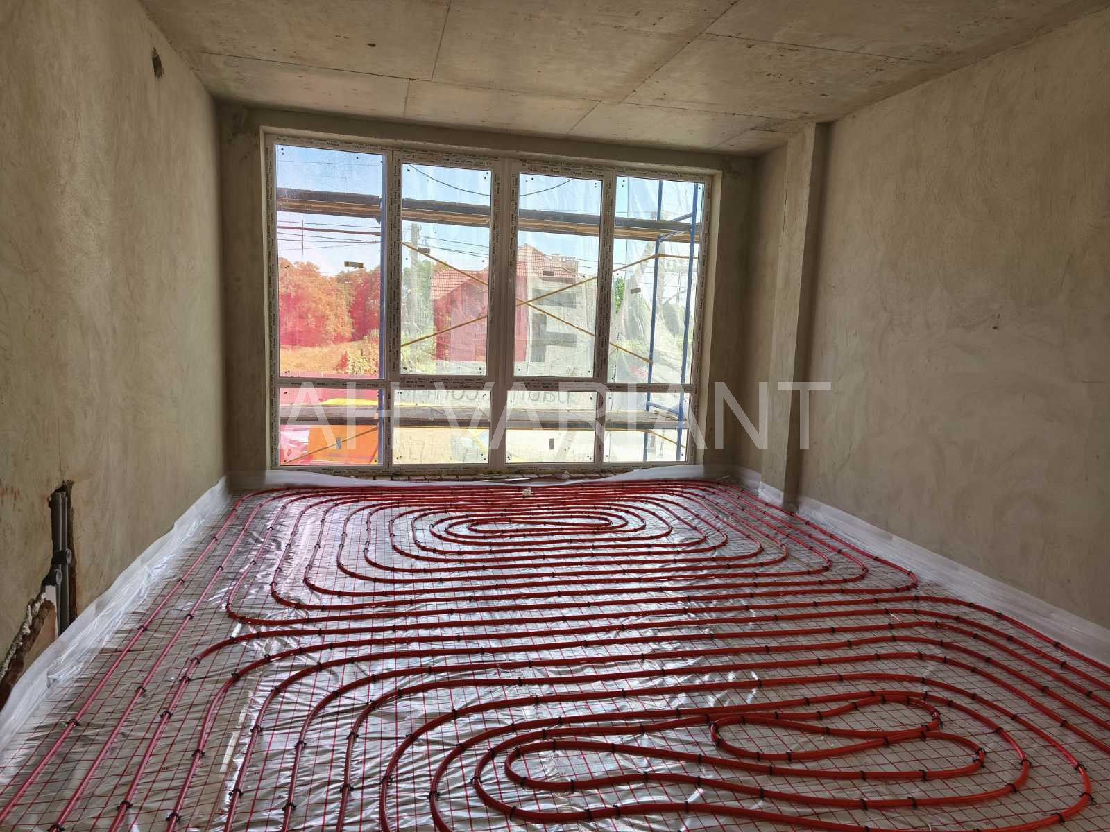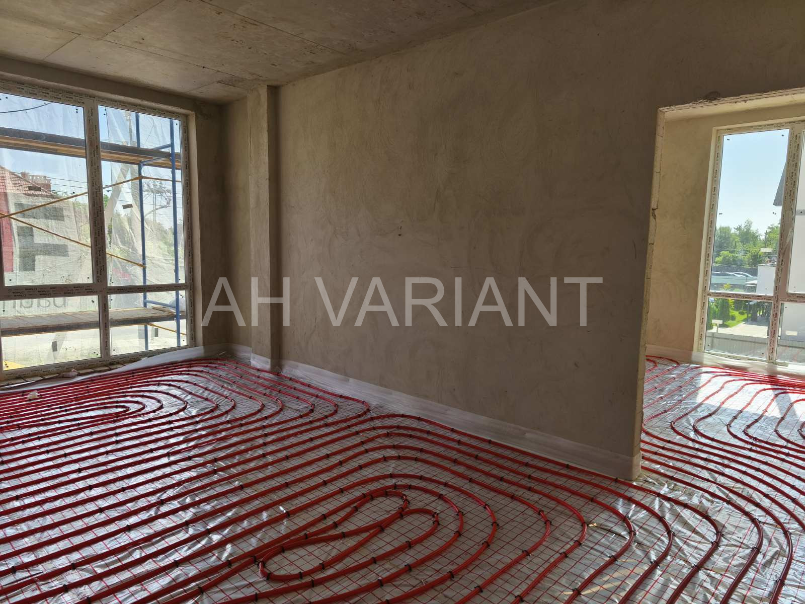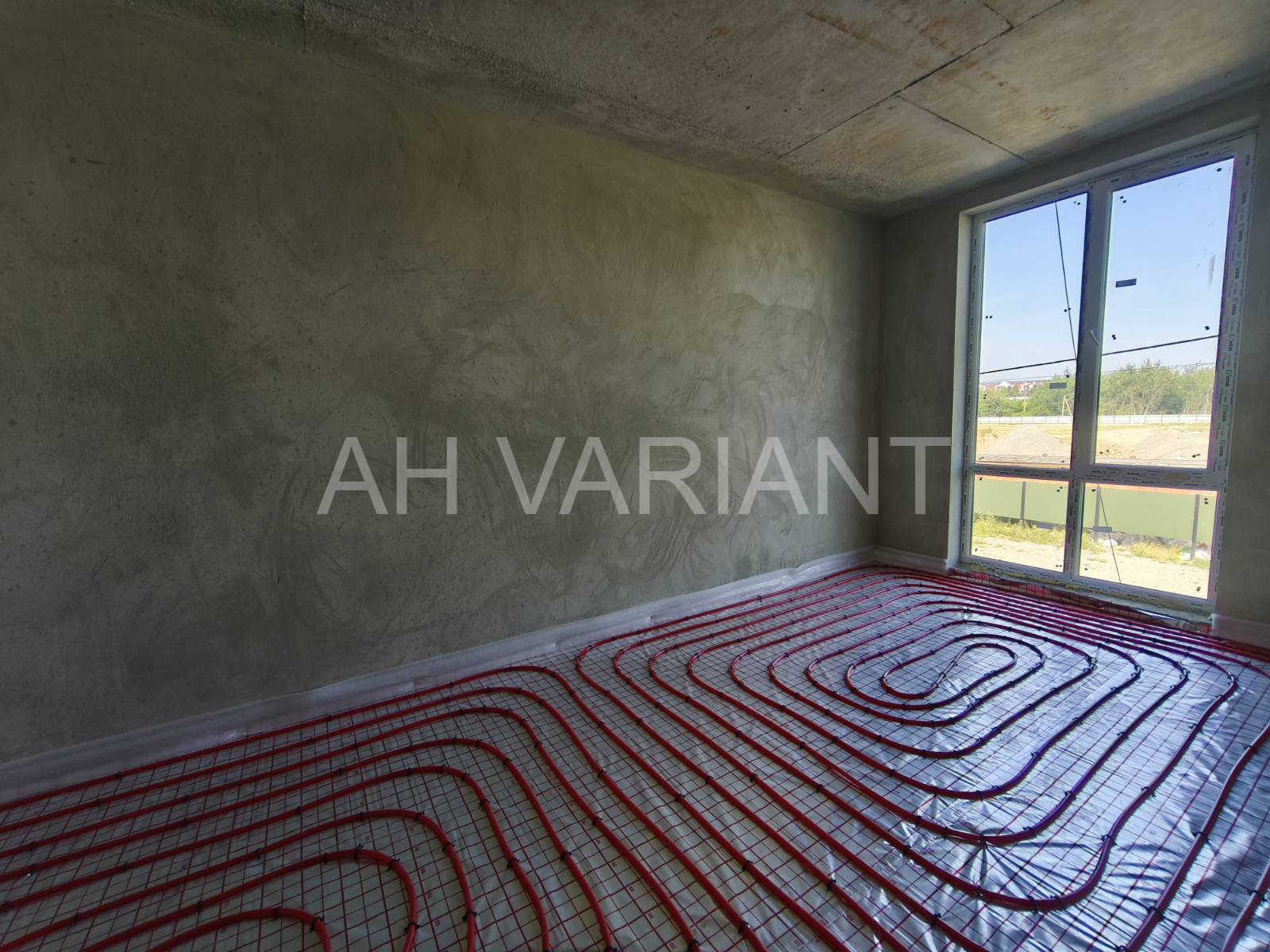 Всередині забудовником надається таке наповнення: тепла підлога та чистова стяжка по всій квартирі, стіни поштукатурені, розведена сантехніка, заведений силовий кабель з щитком та автоматом на котел, елетрокотел, якісні вхідні двері, встановлені та підключені лічильники (вода, світло).