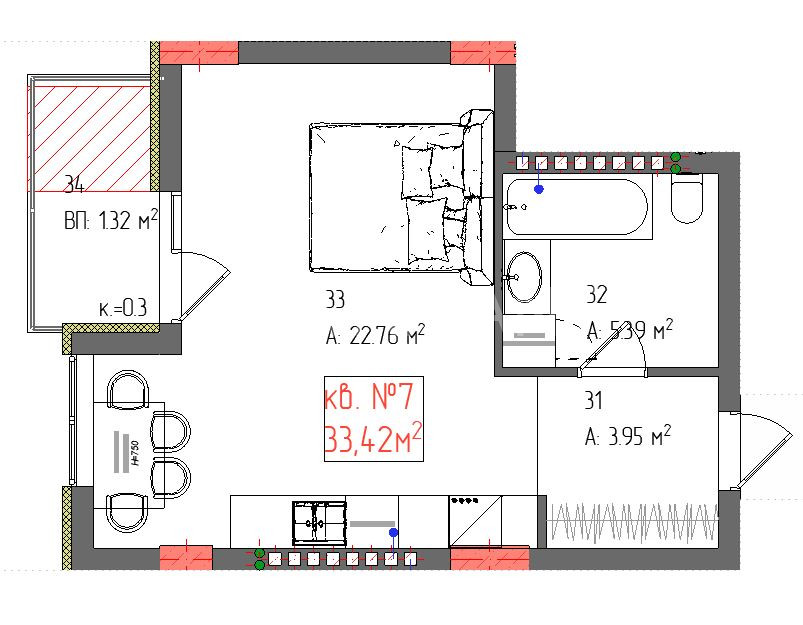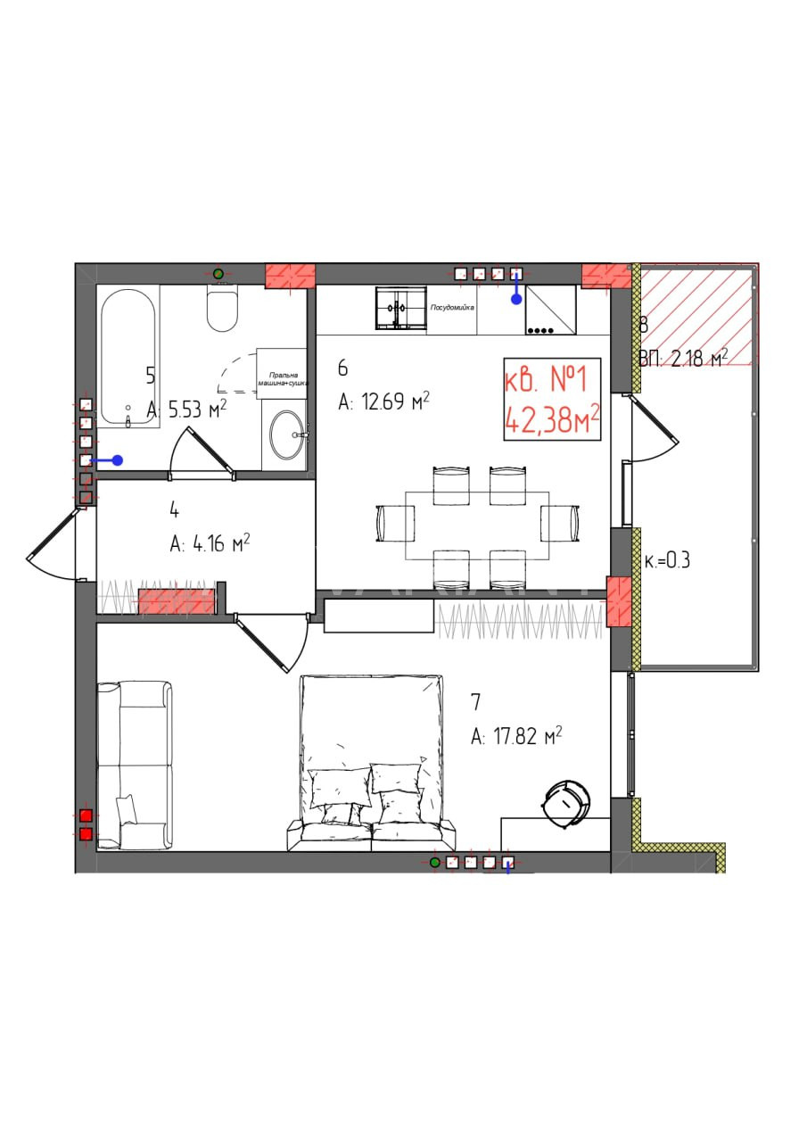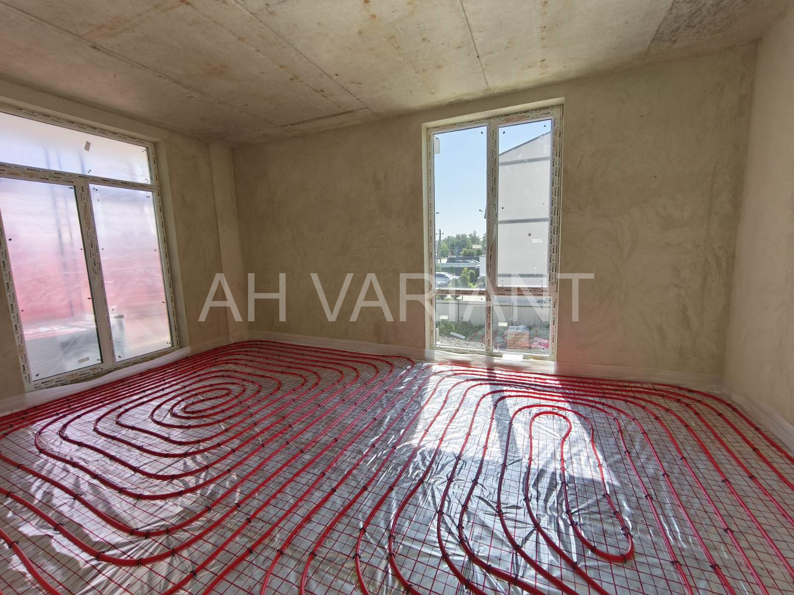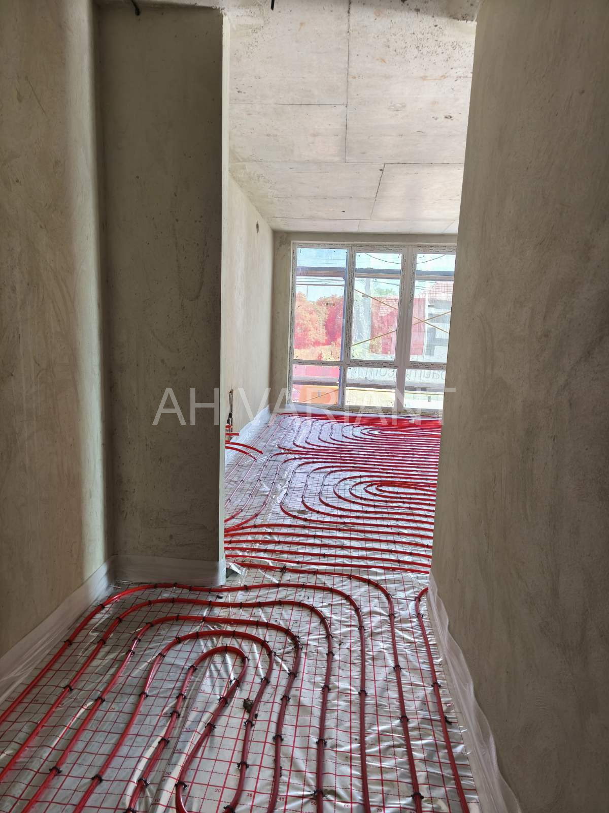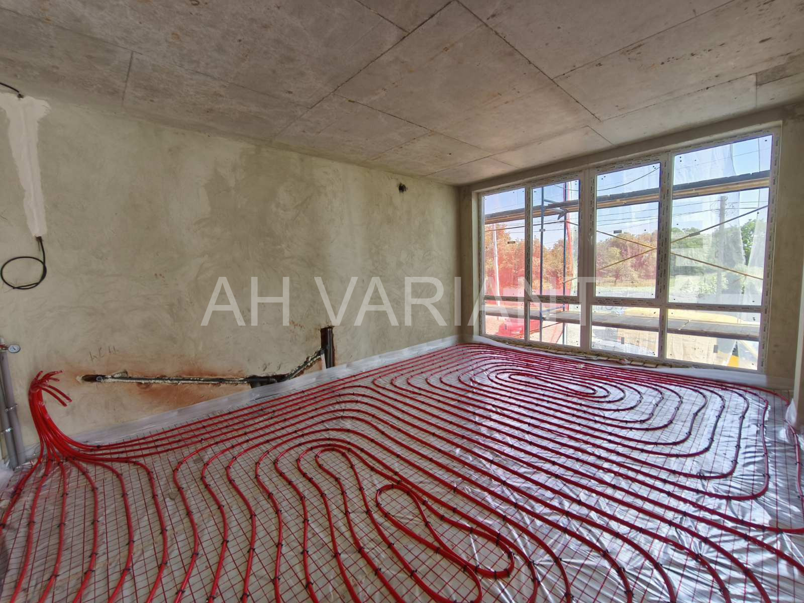 Всередині забудовником надається таке наповнення: тепла підлога та чистова стяжка по всій квартирі, стіни поштукатурені, розведена сантехніка, заведений силовий кабель з щитком та автоматом на котел, елетрокотел, якісні вхідні двері, встановлені та підключені лічильники (вода, світло).