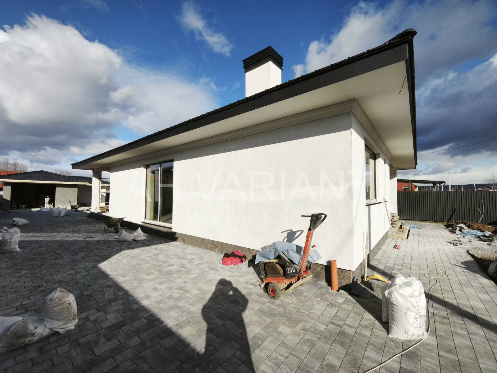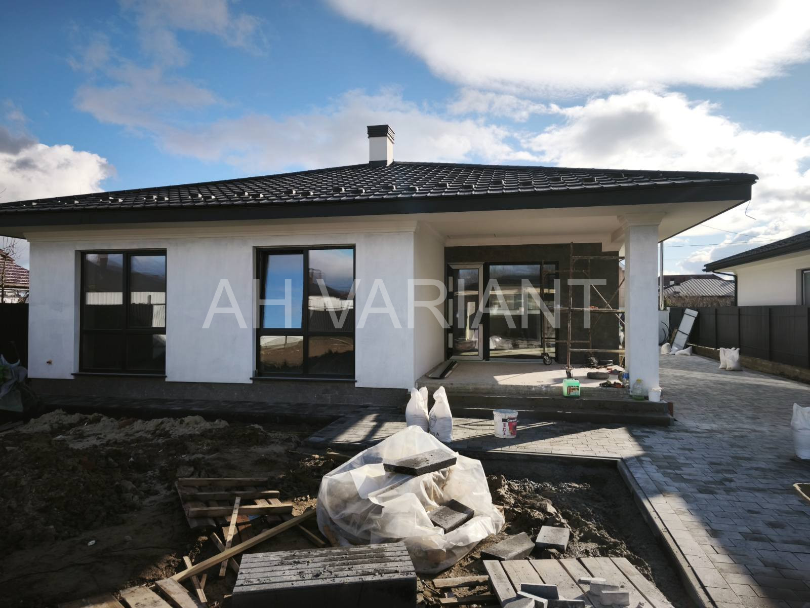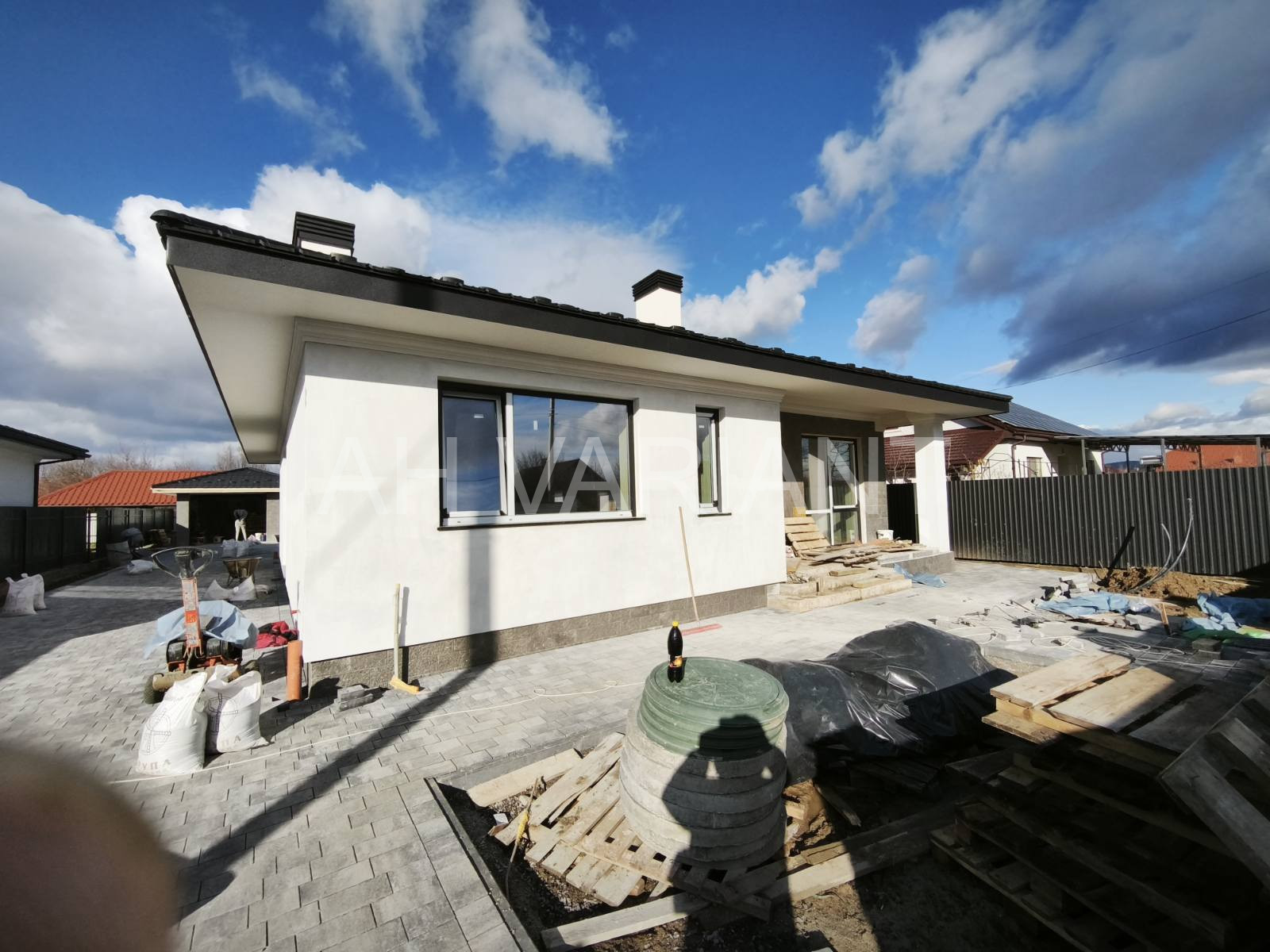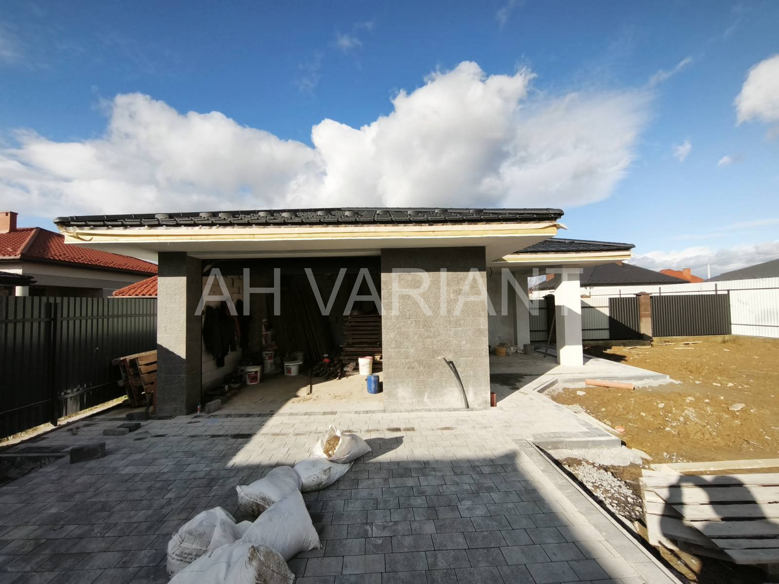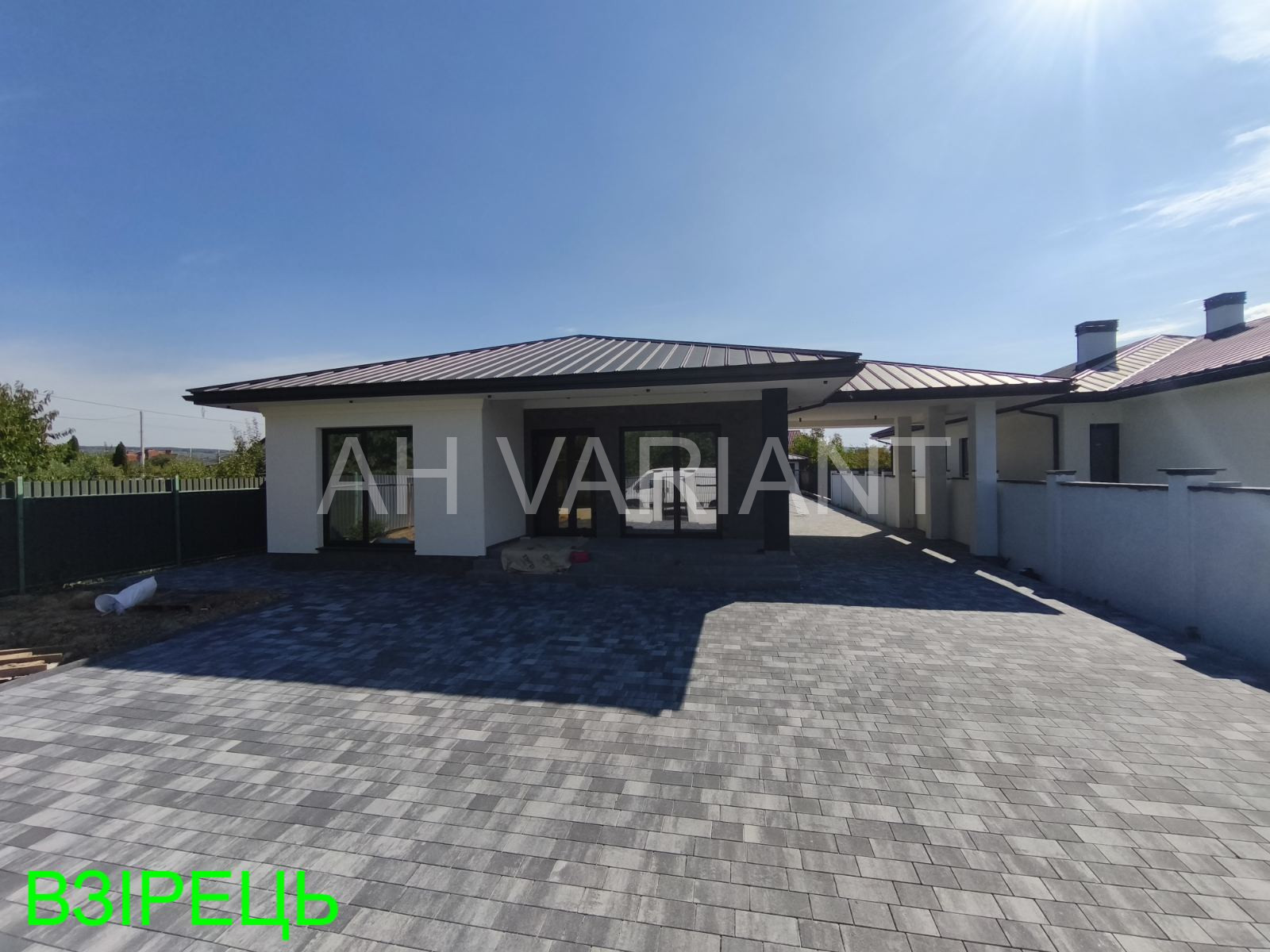 Територія на подвір’ї викладена бруківкою, озеленена, встановлено паркан від сусідів та центральний паркан із каліткою і воротами на автоматиці. Додатково на території встановлений гараж з автоматикою та крита альтанка, до неї підведено світло і воду.