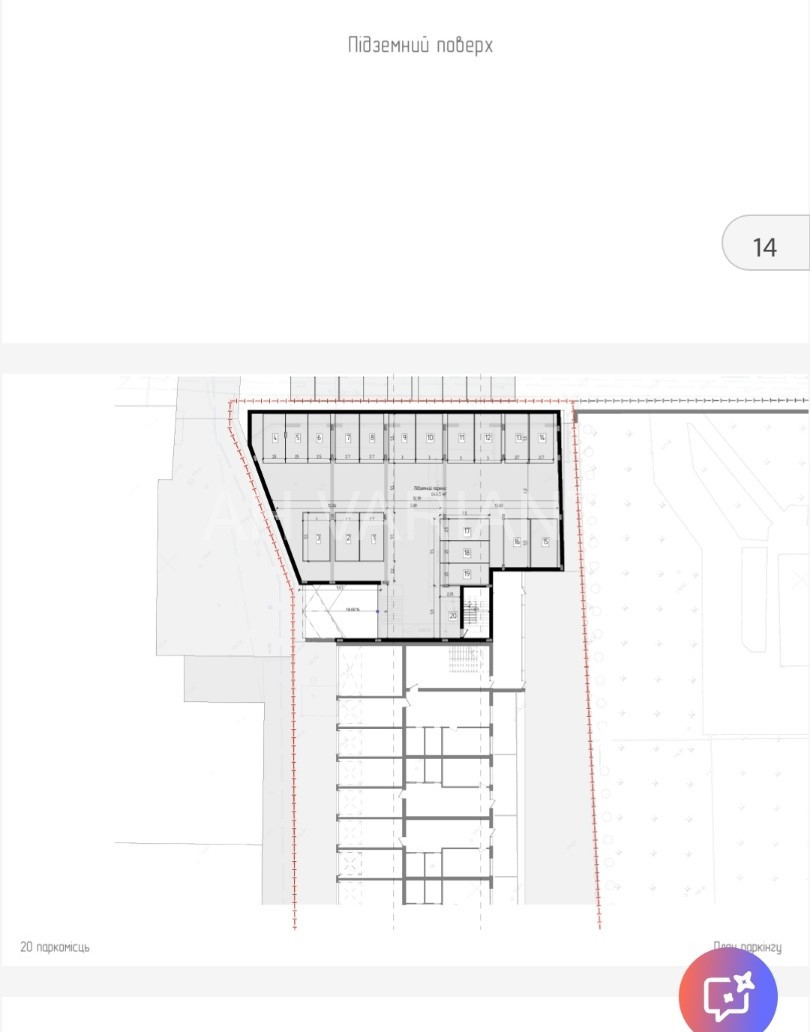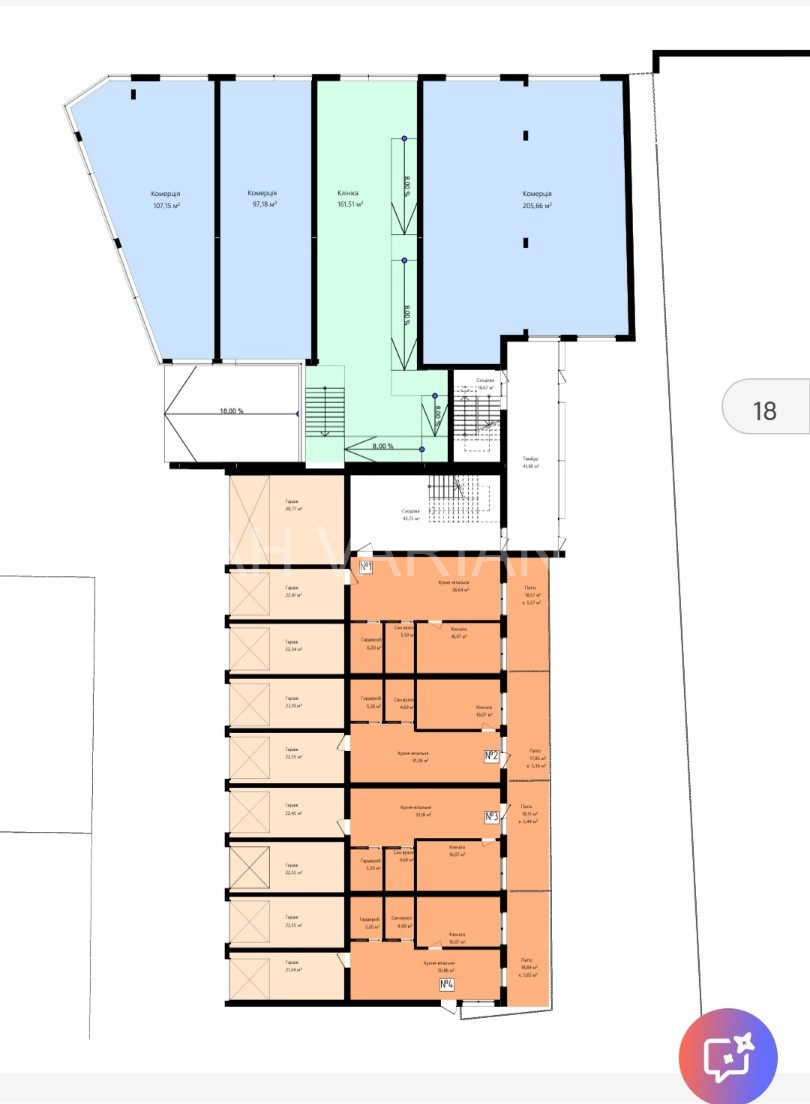 – перший поверх : паркінг, гаражі, комора, комерційна нерухомість;