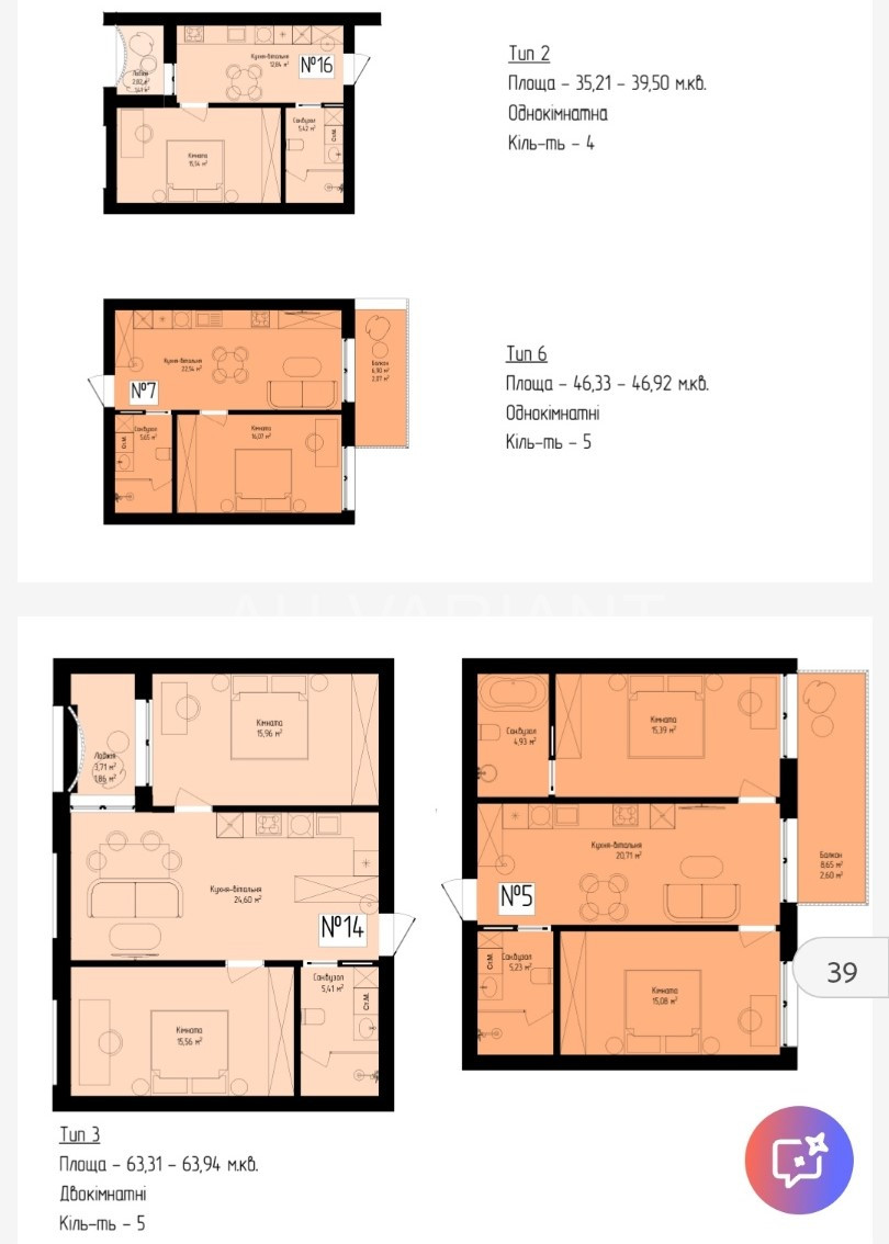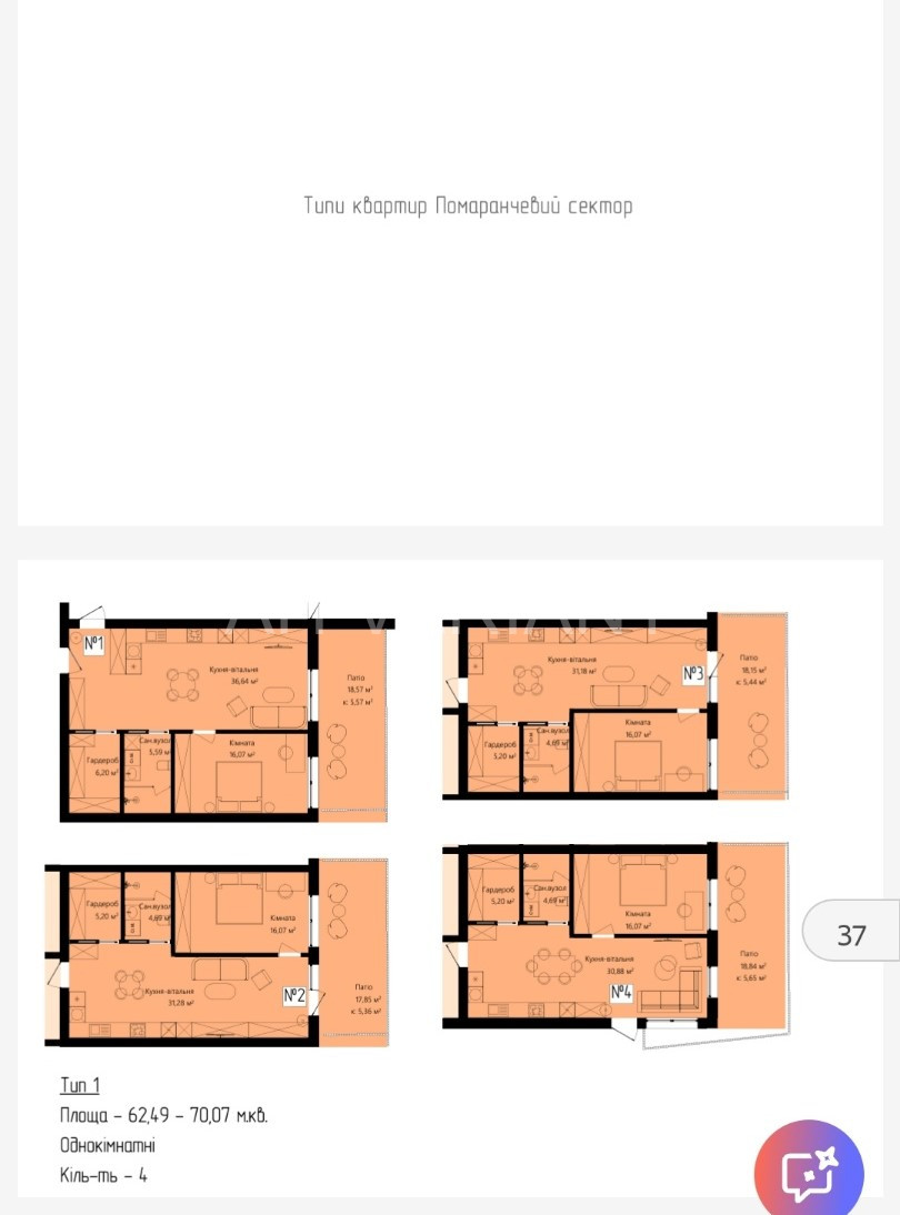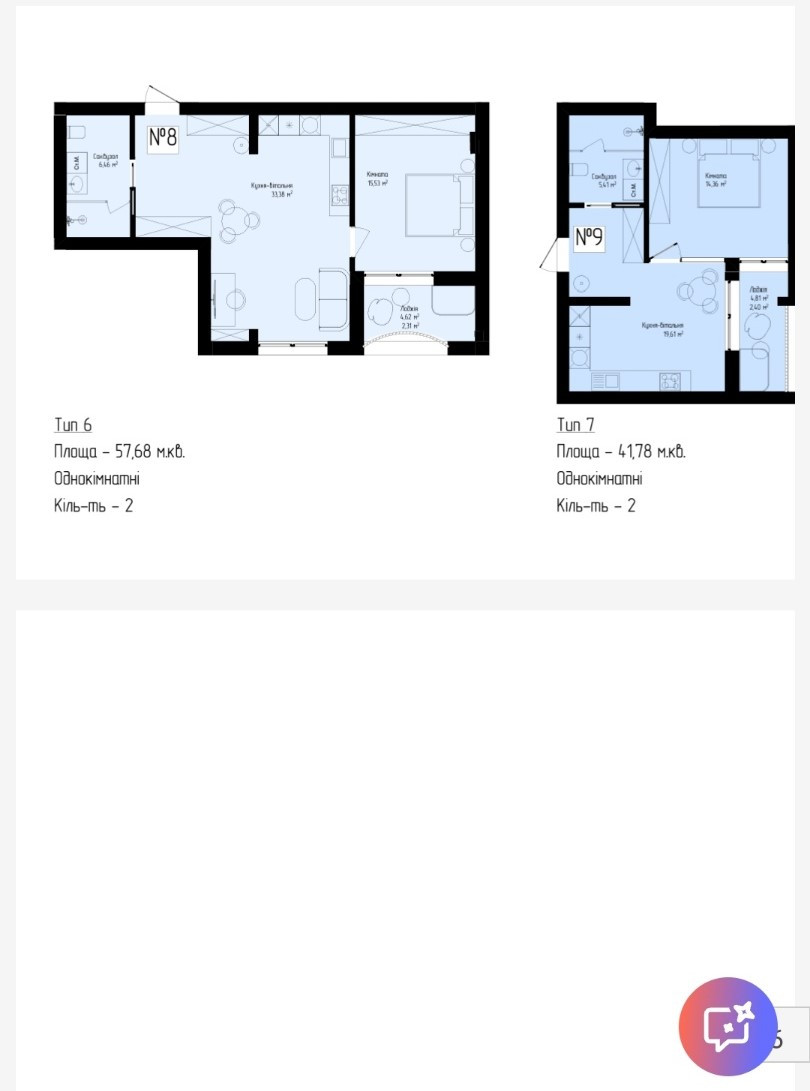 – однокімнатні;