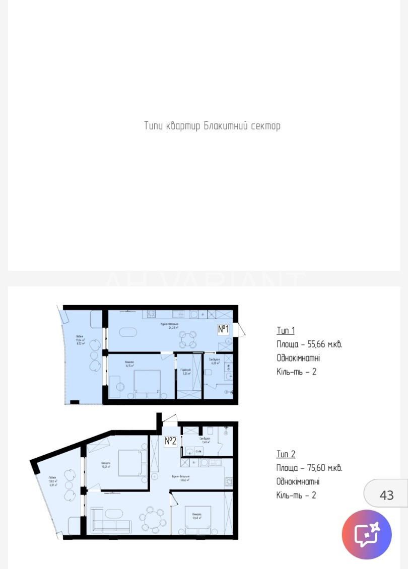 – двох кімнатні;