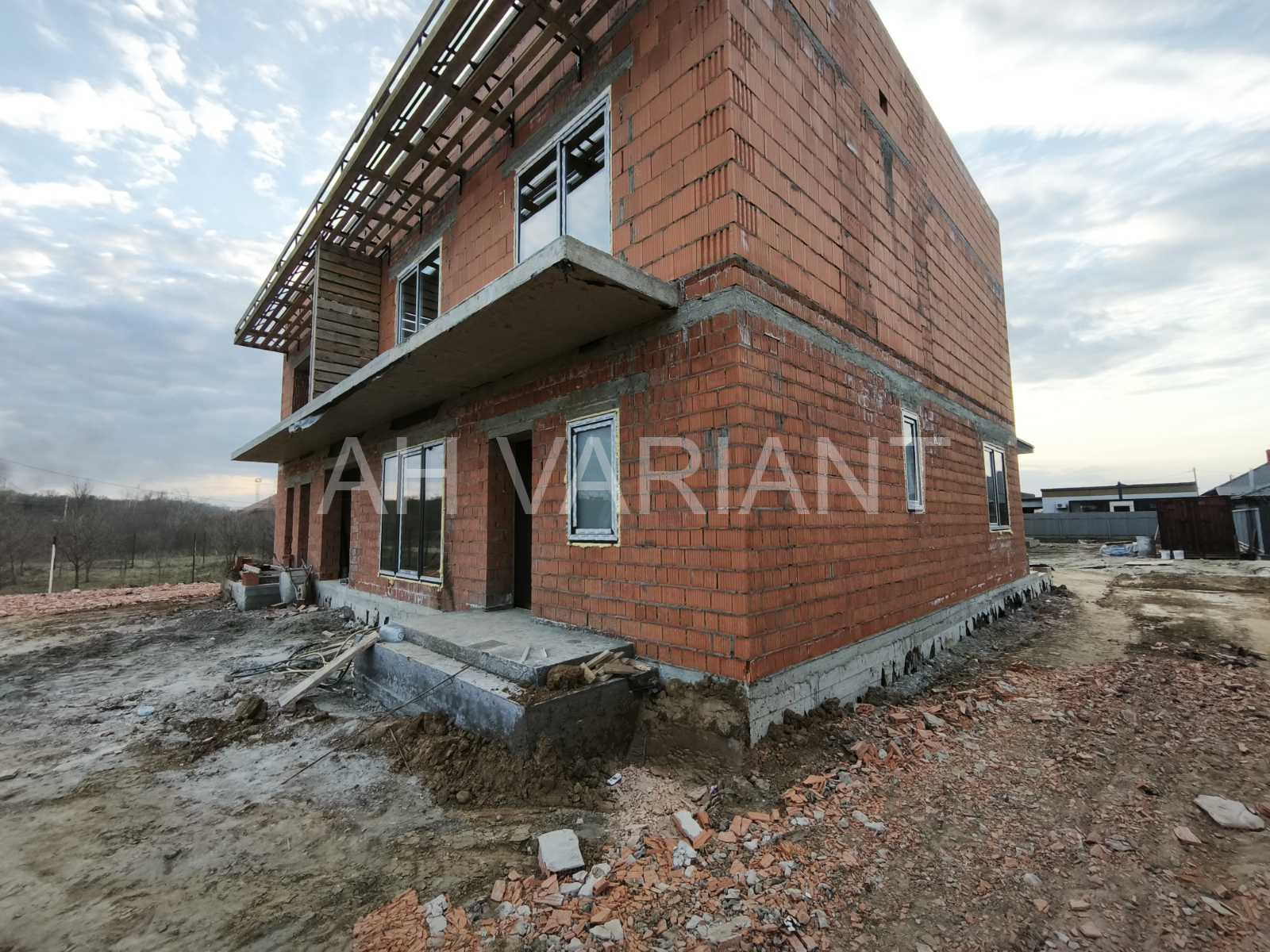 Будинок побудований з цегли, утеплений буде пінопластом 10 см., фасад натягнутий шубою, вікна – шестикамерні, дах односкатний – перекритий металопрофілем та утеплений мінеральною ватою 25 см., якісні вхідні двері, залита тераса та накрита.