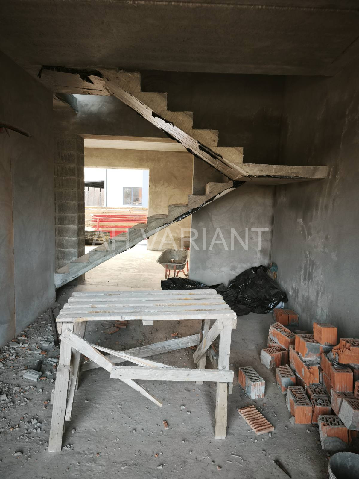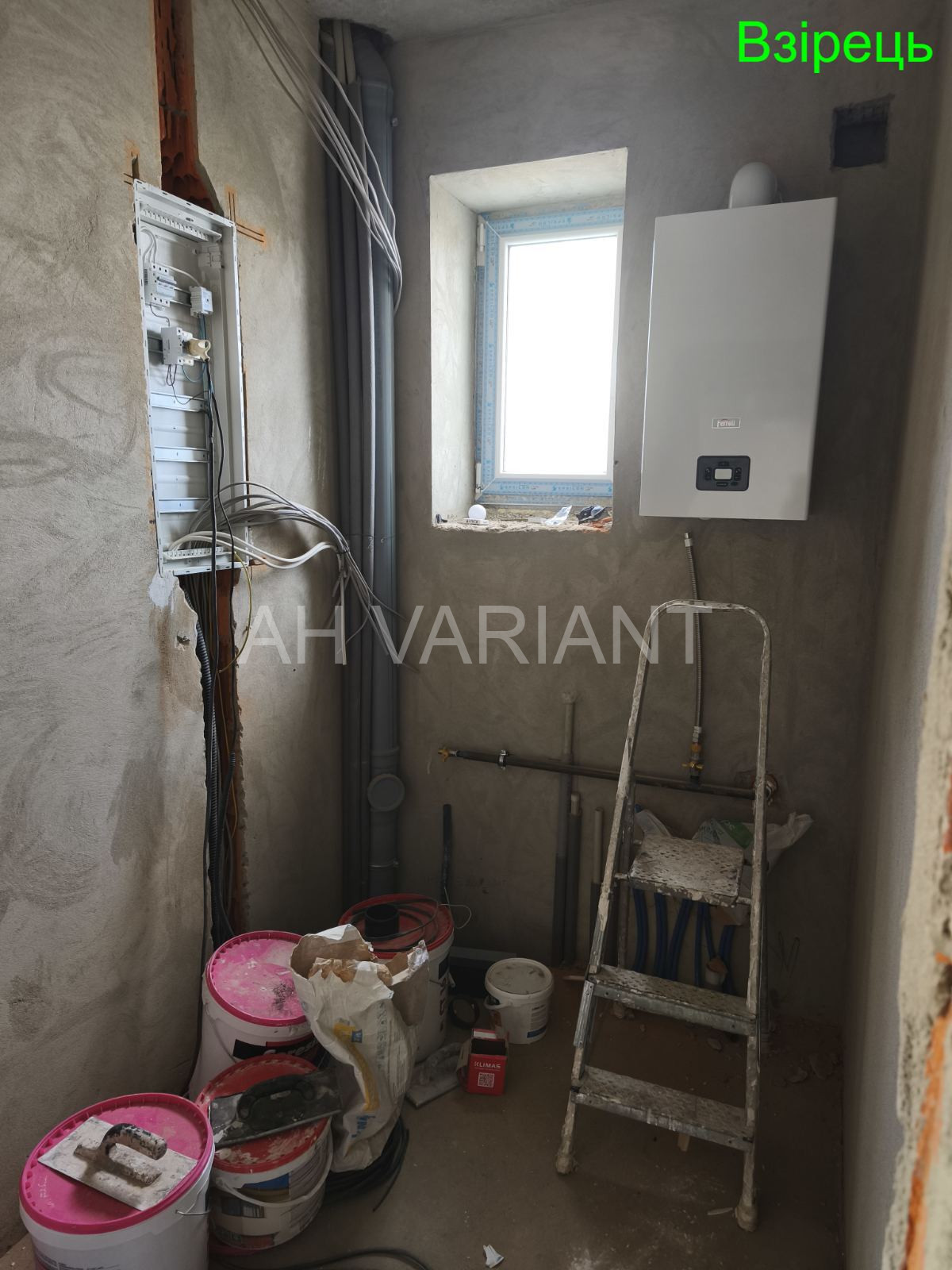 Всередині надається таке наповнення: стіни та перестінки поштукатурені, розведена електрика та сантехніка, тепла підлога, чистова стяжка. встановлений газовий котел + батареї.