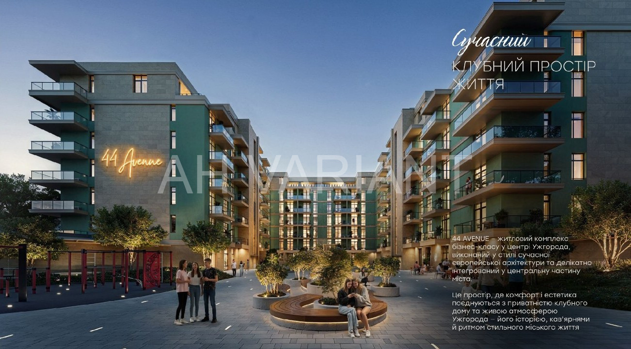 Жити в 44 AVENUE – означає бути в центрі подій. ЖК розташований у самому серці міста, поруч із історичними пам’ятками, мальовничою набережною та престижними закладами освіти. У пішій доступності – школи, садочки, лікерні, фітнес-зал, магазини та кафе. Також на території ЖК є сучасне бомбосховище та підземний паркінг. Ви отримуєте не житло, а унікальну атмосферу міського життя з доступом до всього необхідного.