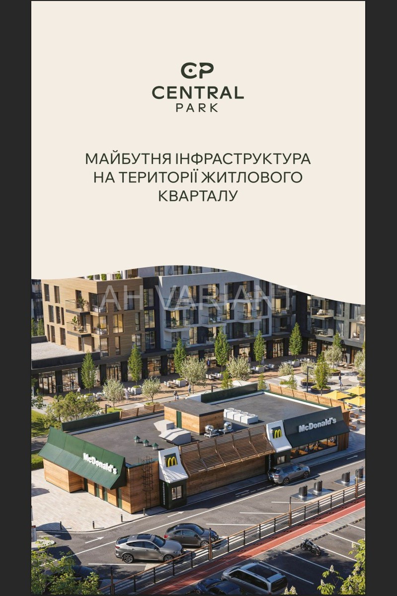 ЖК Central Park – це місто в місті. На території буде: 16 будинків (4-7 поверхів), басейни, власна набережна, 13 гектар закритої території, парки, магазини, кав’ярні, ресторани, підземні паркінги, дитячі майданчики, фітнес-центр, власна школа та багато іншого.