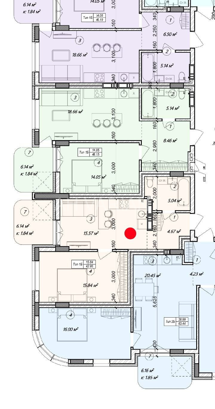 В квартирі буде зроблено забудовником: чистова стяжка, встановлені міжкімнатні перестінки, стіни поштукатурені, заведено воду та електрику в квартиру без розводки, встановлені лічильники на воду та світло.