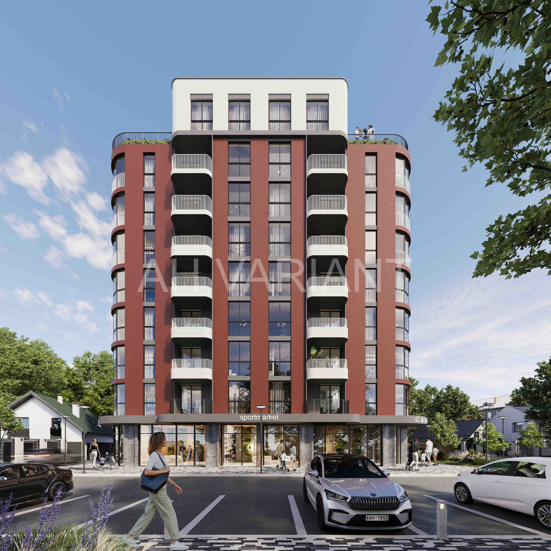 Будинок цегляний монолітно – каркасний, дев’ятиповерховий (1-й поверх комерція та офіси, 2-9 житлові). Буде ліфт, дитячий майданчик, парковка, бомбосховище згідно норм ДБН, лобі біля 50 м.кв з освітленням та інтернетом (резервні акумулятори).