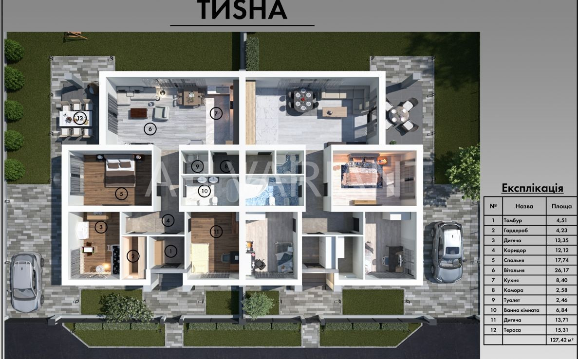 Також можна придбати даний котедж на початку будівництва з розтермінуванням та можливістю вносити корективи щодо внутрішнього планування.