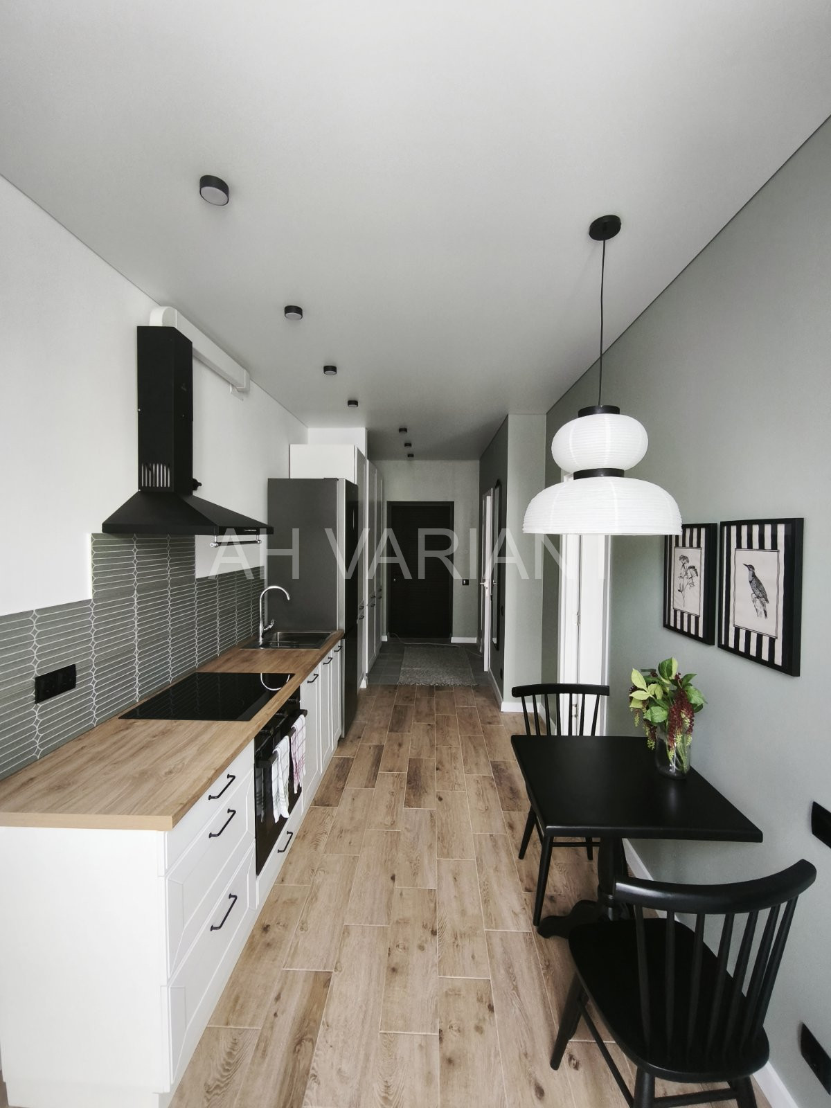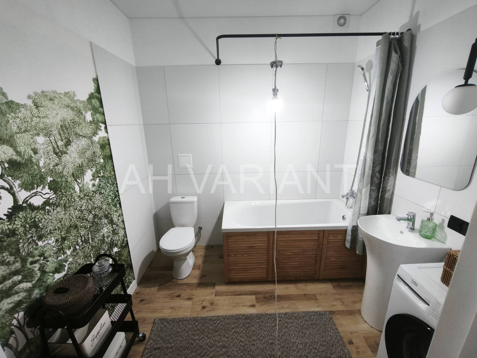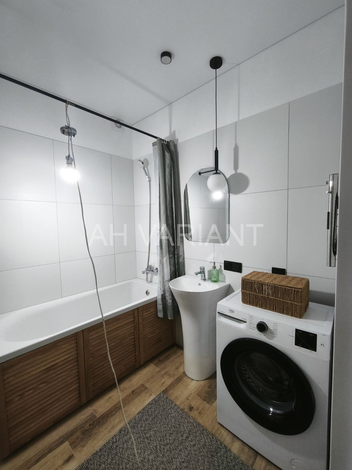 Всередині квартири зроблено гарний сучасний євроремонт в англійському стилі, встановлена якісна побутова техніка, меблі та м’яка частина, заходи і проживай.