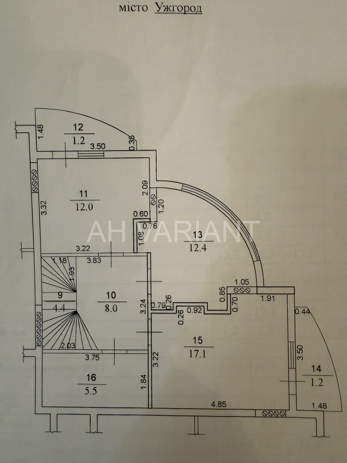 – перший поверх: кухня-студія з виходом на балкон, прихожа, санвузол для гостей, спальня яка також має вихід на балкон.