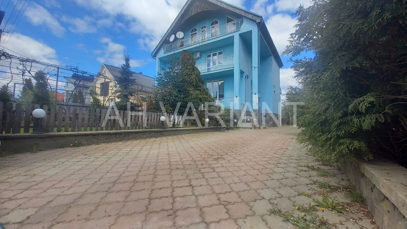 Двір викладений бруківкою