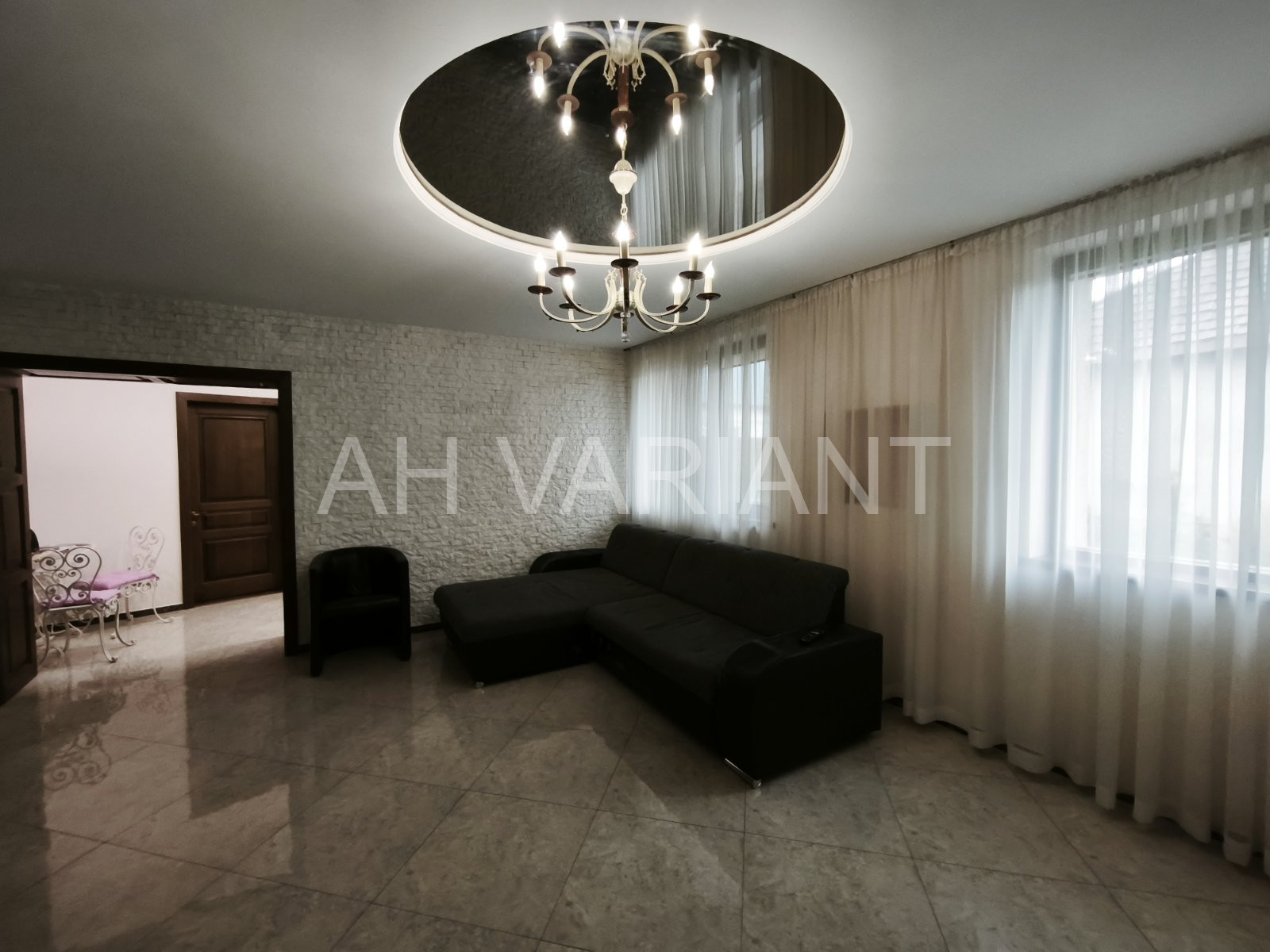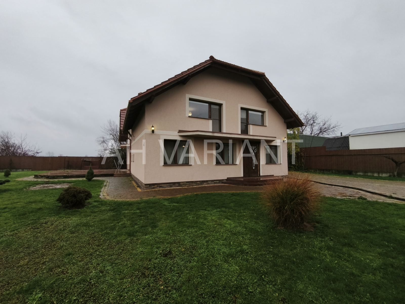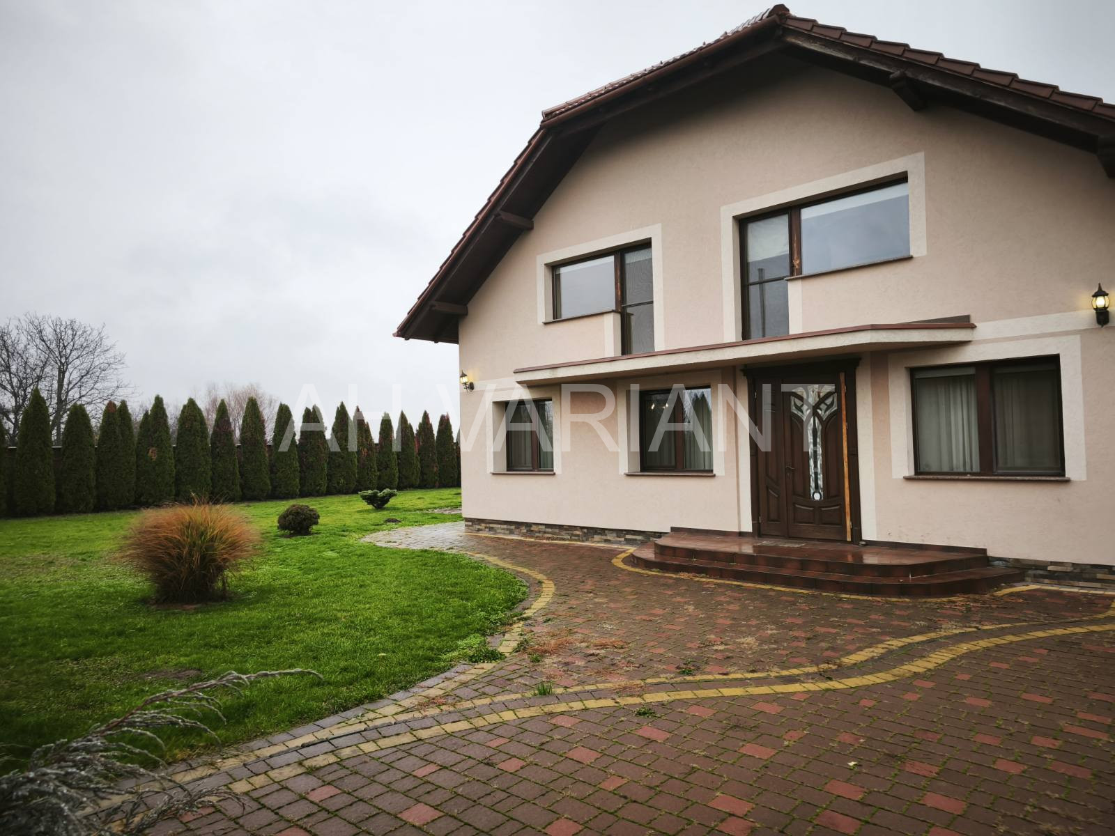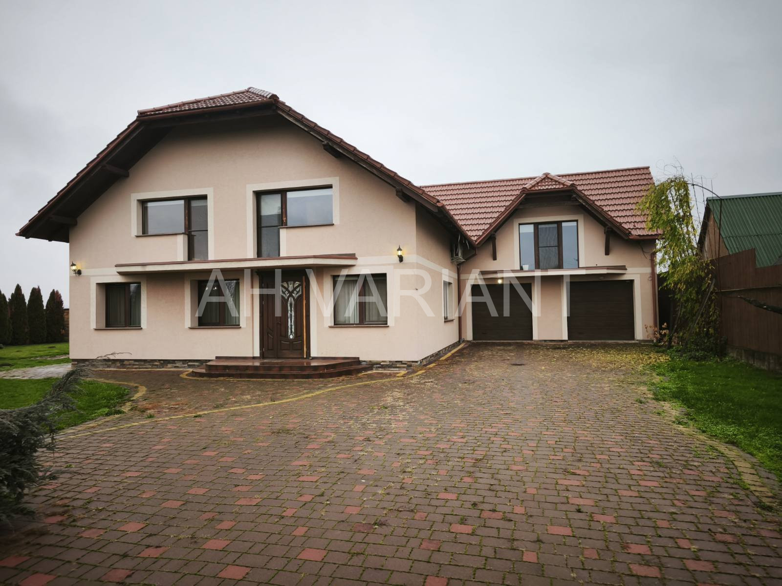– перший поверх: прихожа, вітальня з каміном, кухня-студія з виходом на терасу, 2 санвузли, комора, пральня, котельня, гараж на 2 авто з автоматикою.