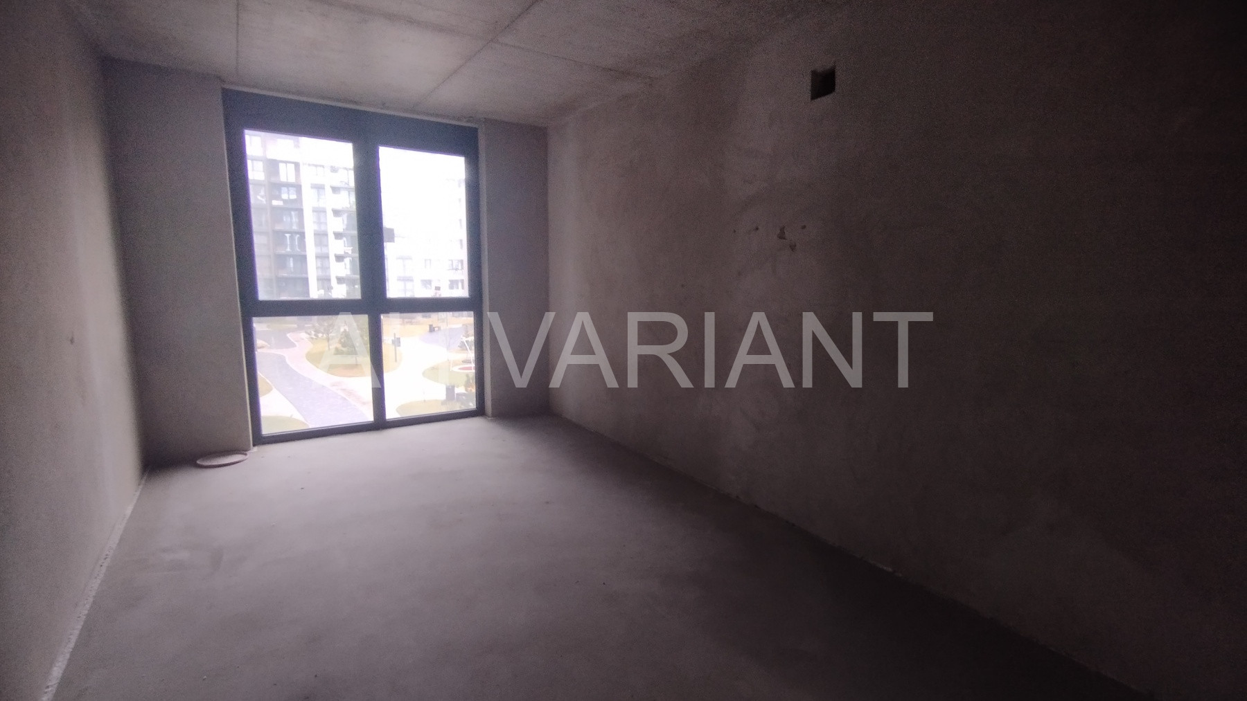 Зручний план: кухня студіо із виходом на балкон, дві окремі кімнати з панорамними вікнами, два санвузли, просторий коридор де можна зробити гардеробну.