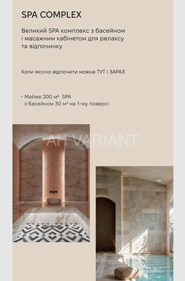 — 200 м.кв власного SPA з басейном 30 м.кв