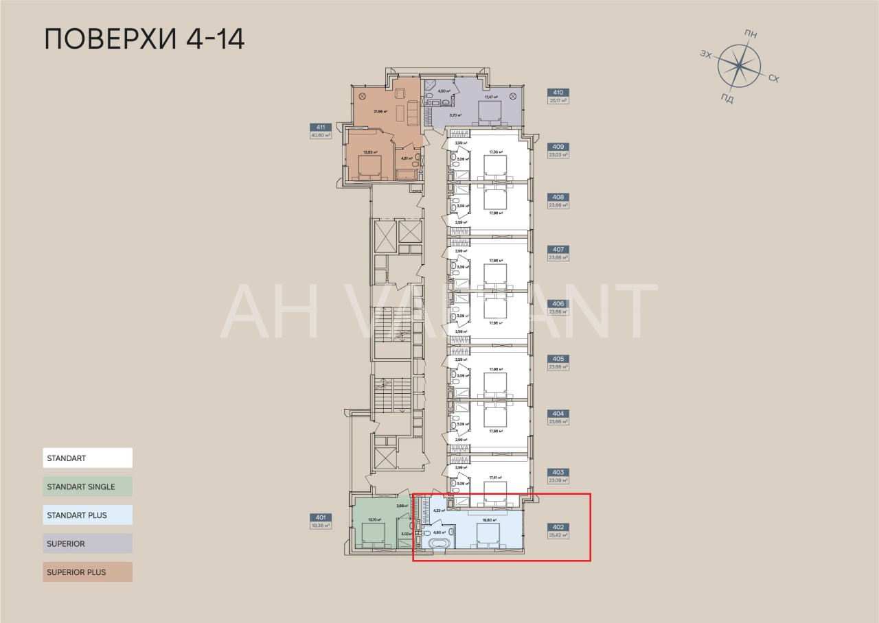 Площі апартаментів від 19,38 м.кв – 40,06 м.кв