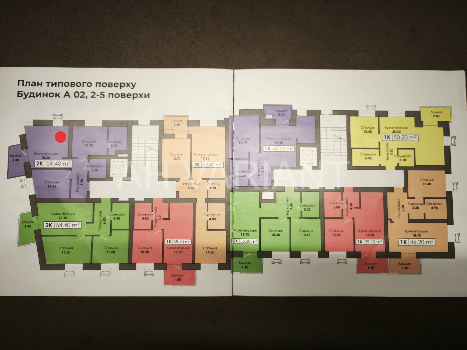 До вашої уваги пропонуємо квартиру площею 59.4 м. кв на другому поверсі.