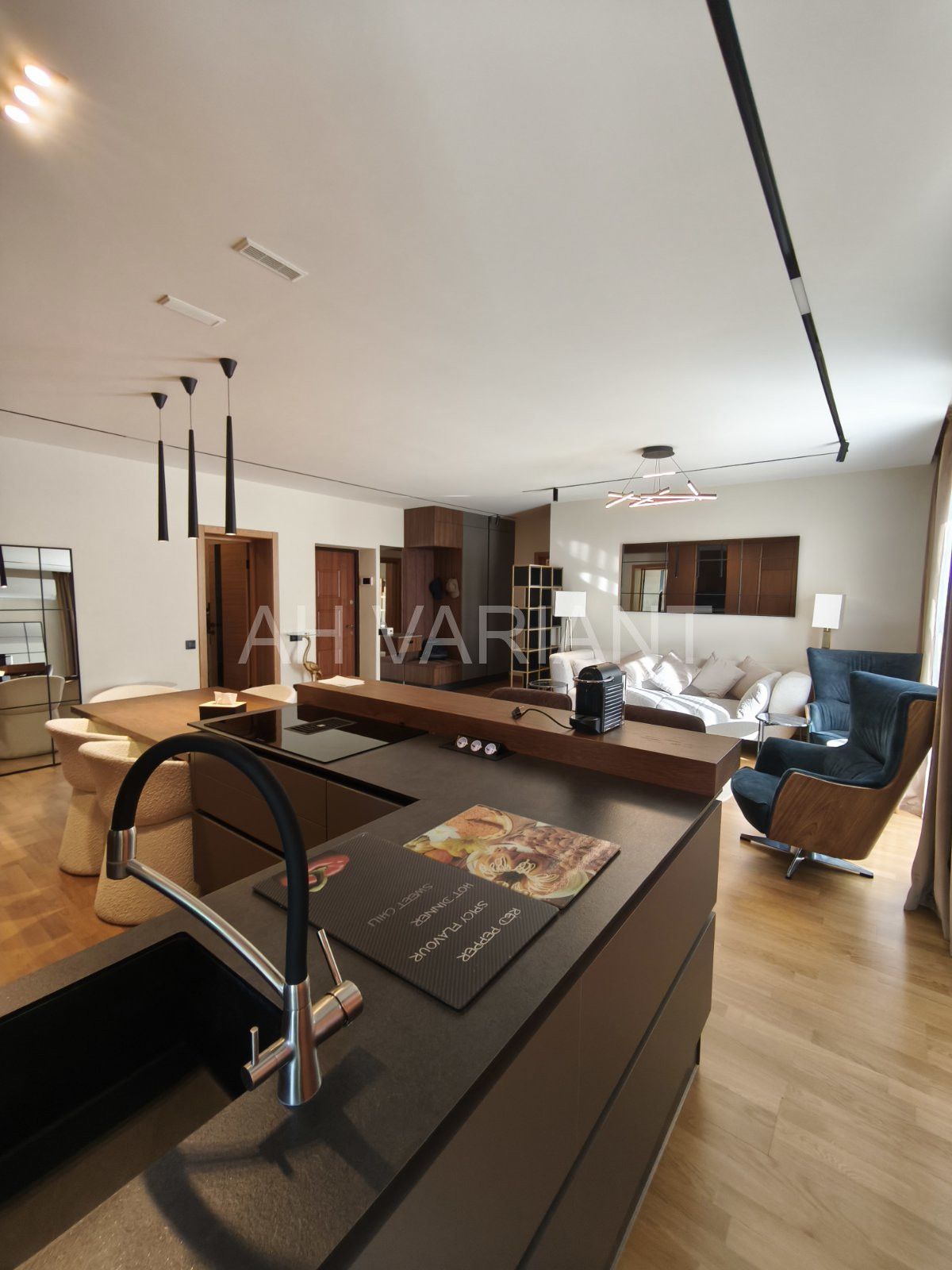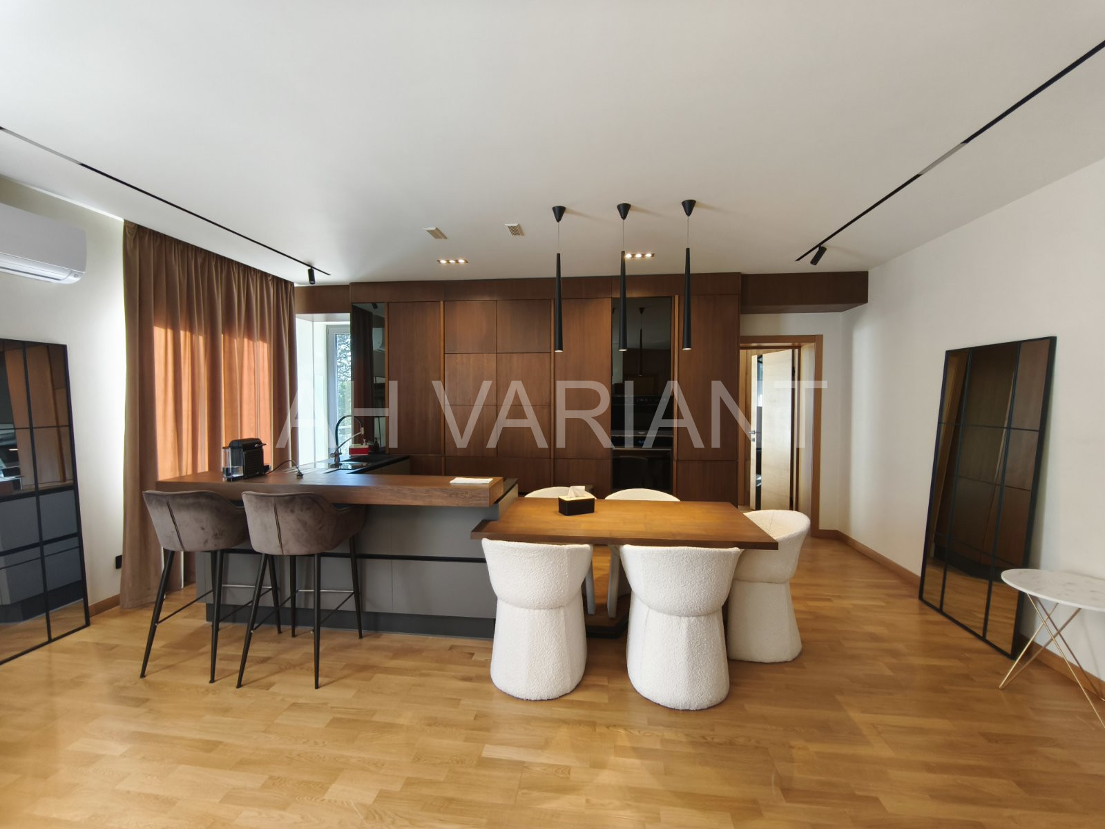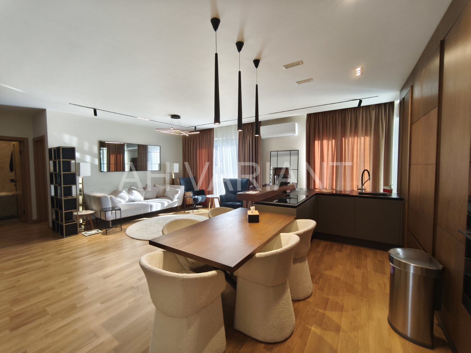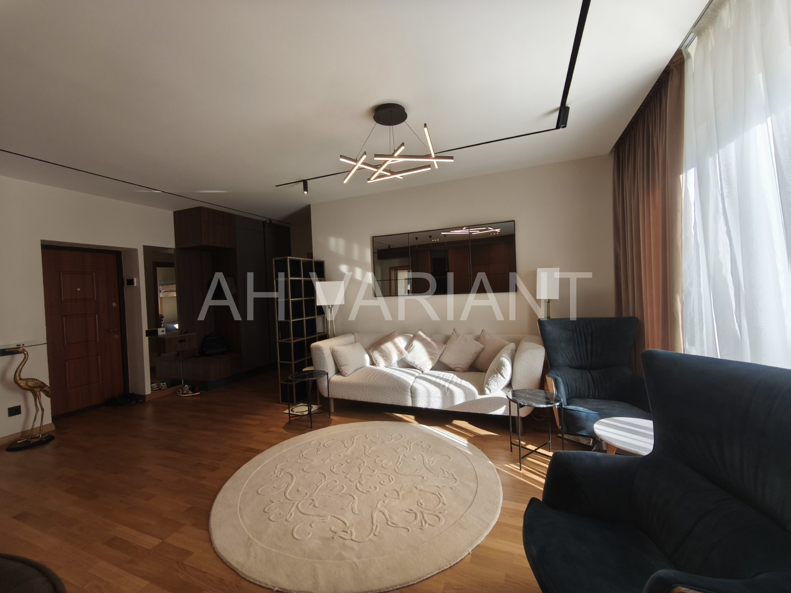 Всередині квартири зроблено дизайнерський ремонт, встановлена якісна мебель та м’яка частина яка була виконана під замовлення, також вся необхідна побутова техніка.
