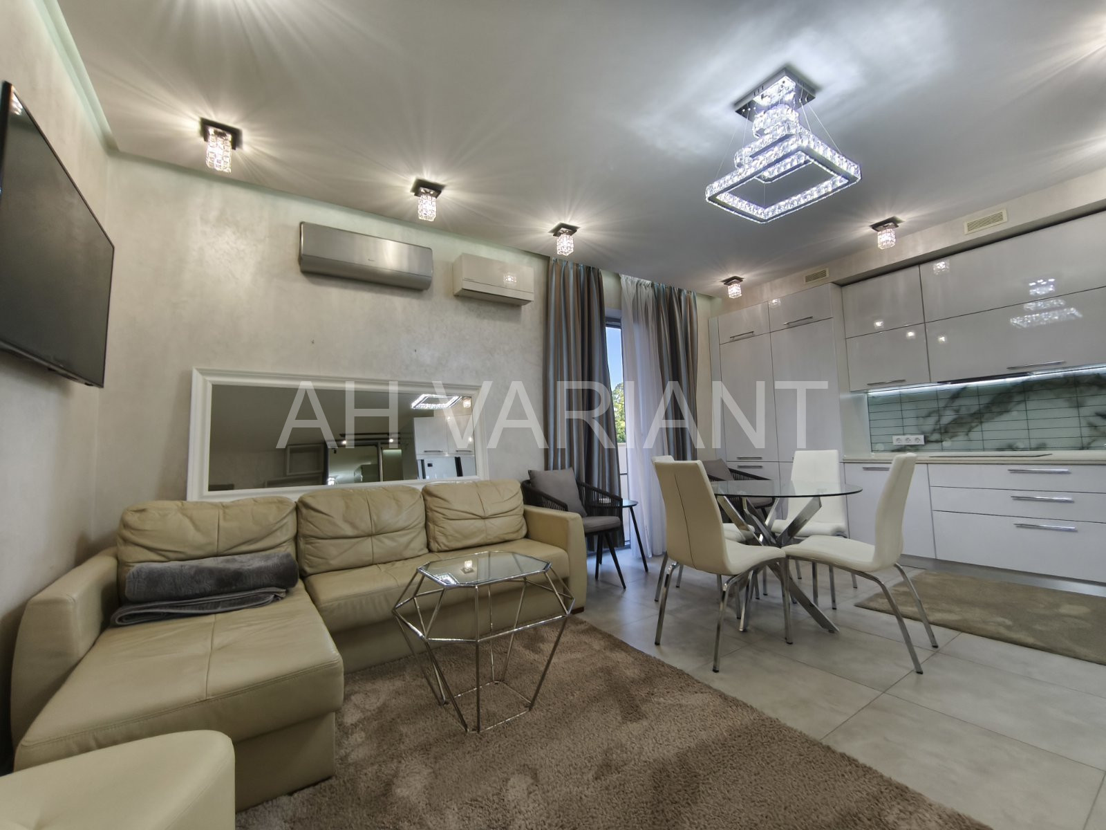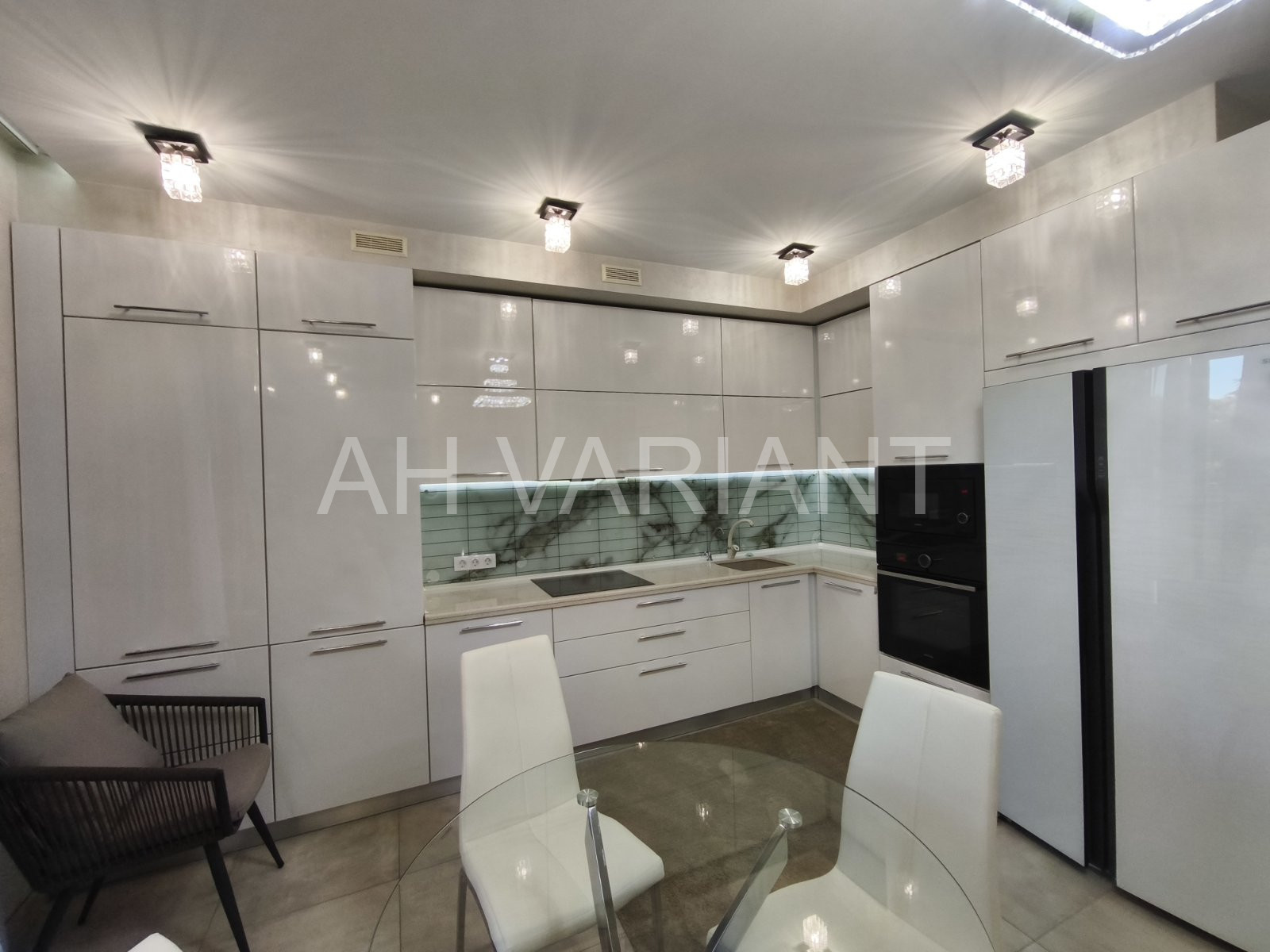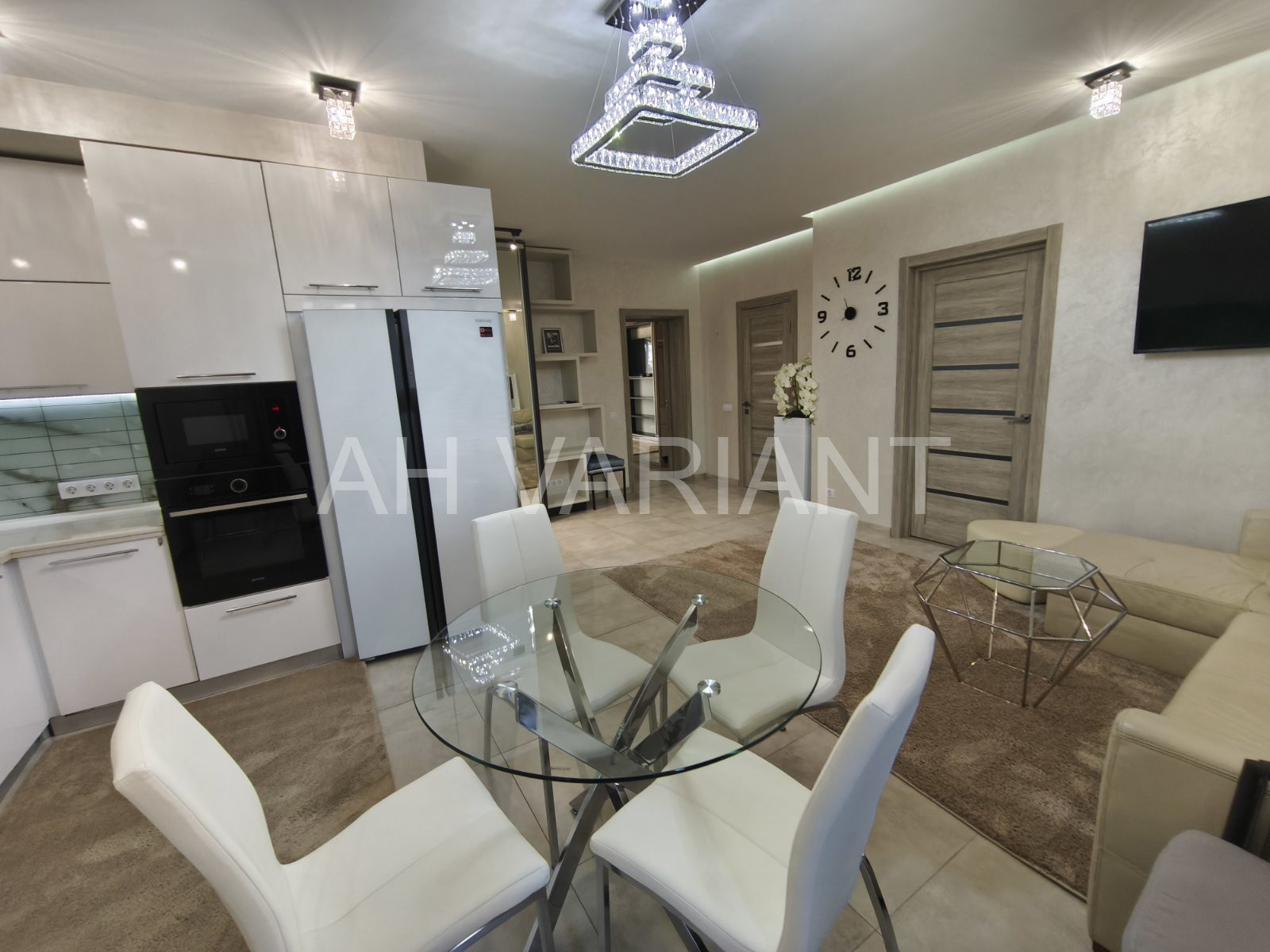 Всередині квартири зроблено дизайнерський ремонт, встановлена якісна мебель та м’яка частина яка була виконана під замовлення, також вся необхідна побутова техніка.