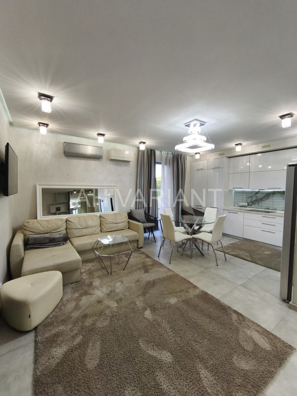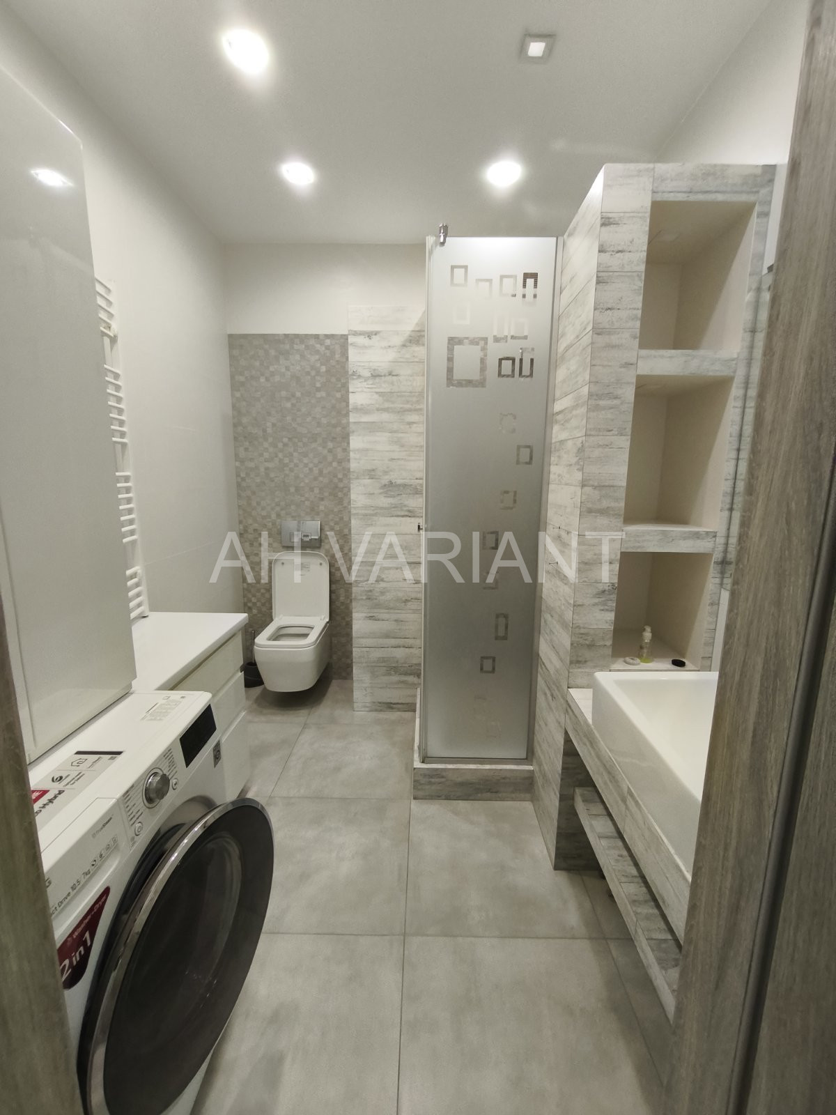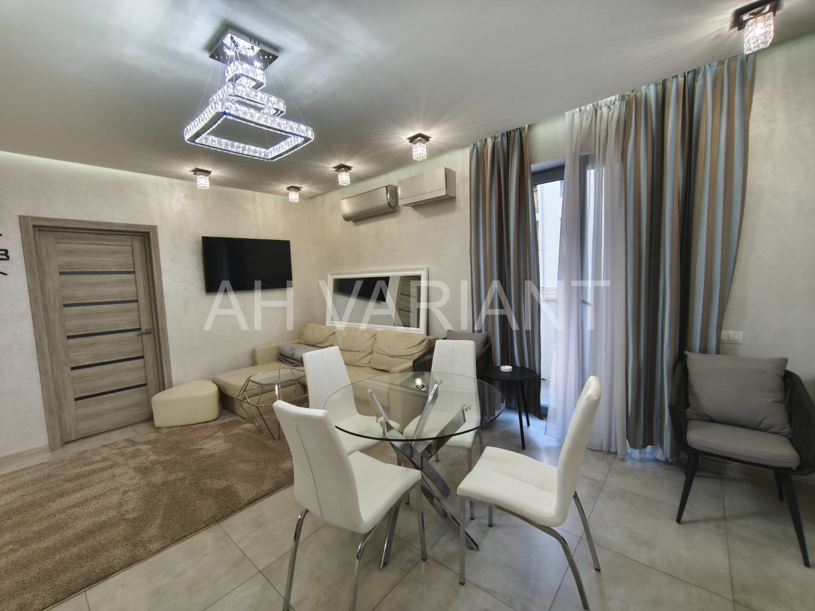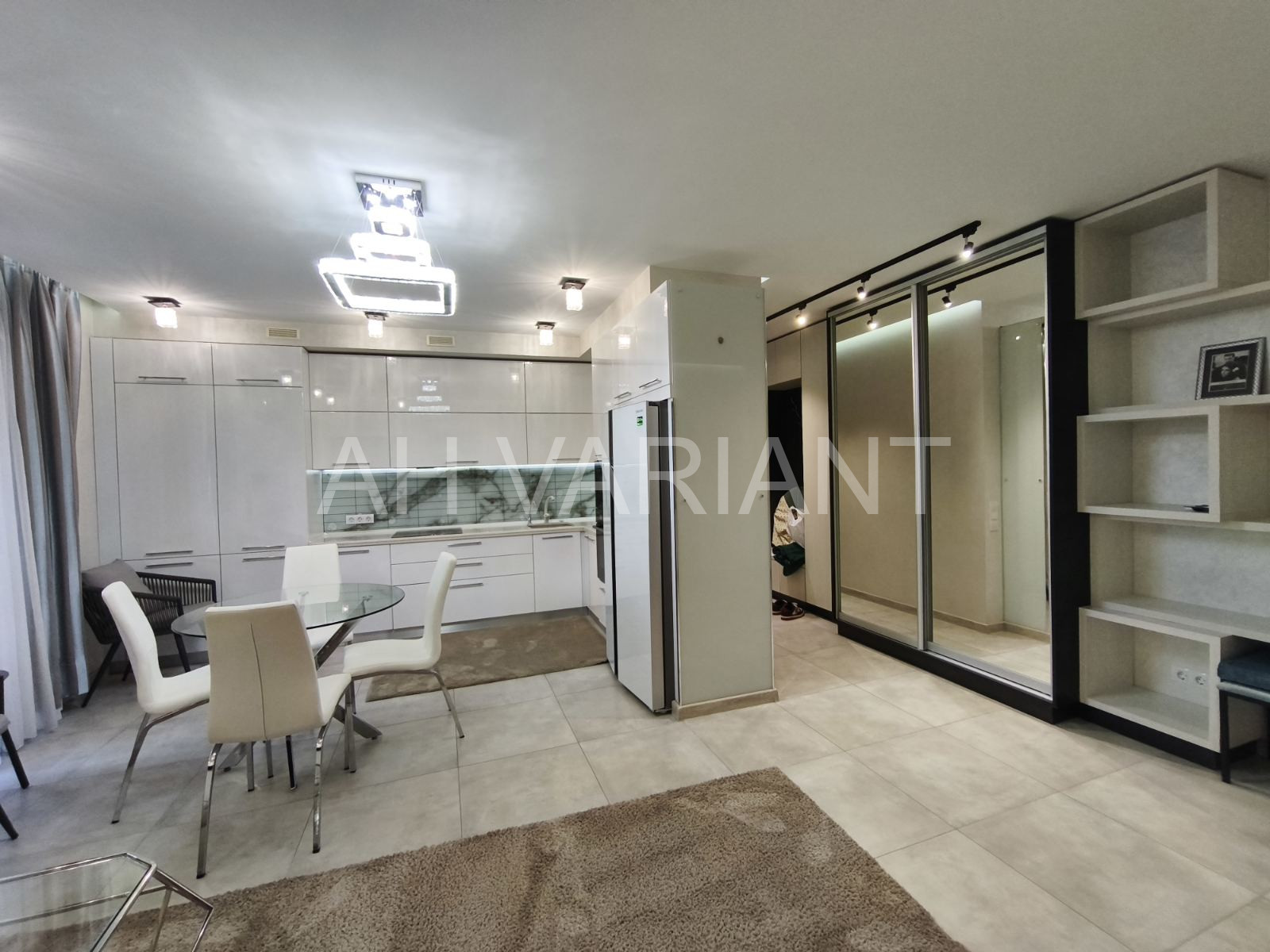 Всередині квартири зроблено дизайнерський ремонт, встановлена якісна мебель та м’яка частина яка була виконана під замовлення, також вся необхідна побутова техніка.
