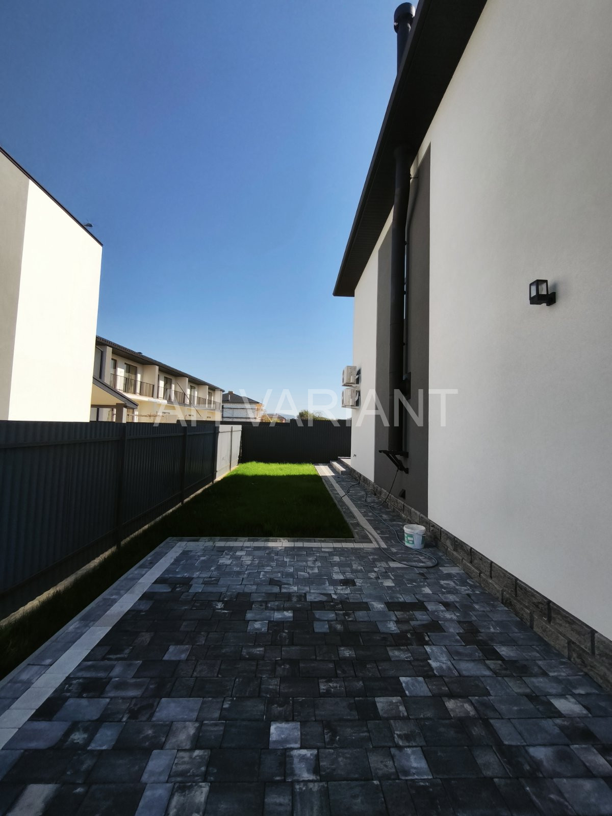 Подвір’я викладено бруківкою, підсипано родючим грунтом, встановлений паркан від сусідів, та центральний паркан з калиткою і воротами.