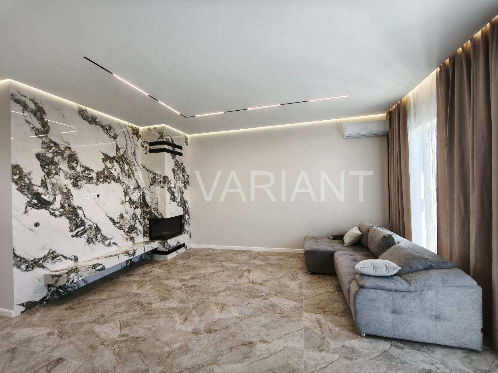 Опалення автономне водяне електричне + тепла підлога по всьому будинку + інверторні кондиціонери. Та додатково власник зробив твердопаливний камін.