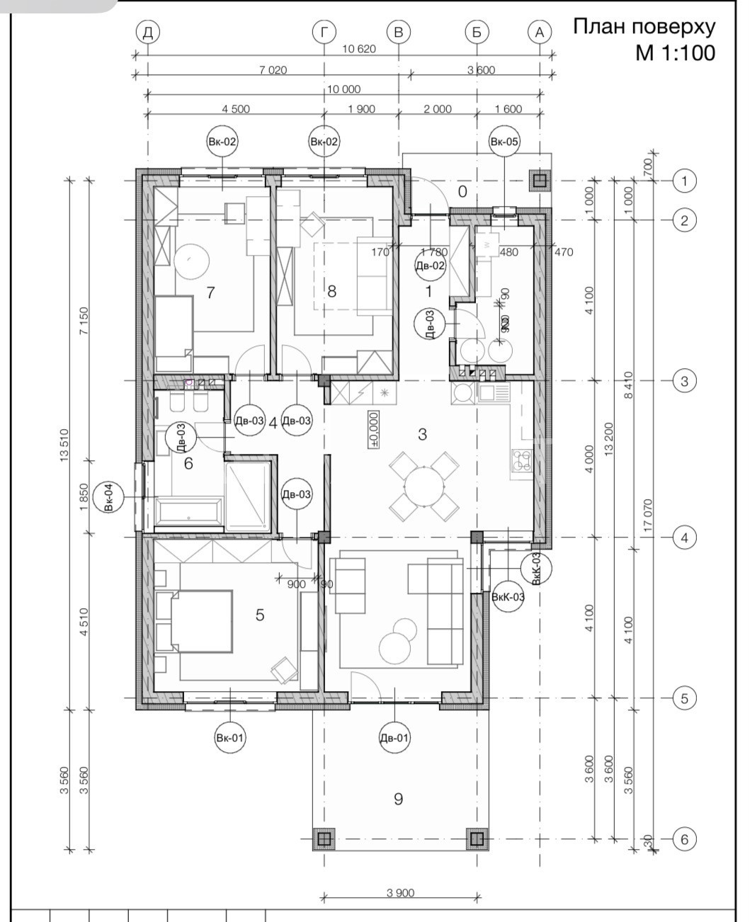 Зручне планування: три окремі кімнати, простора кухня-студіо із виходом на терасу, два санвузли та технічне приміщення.
