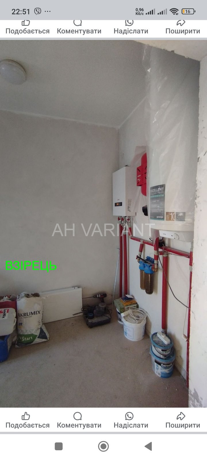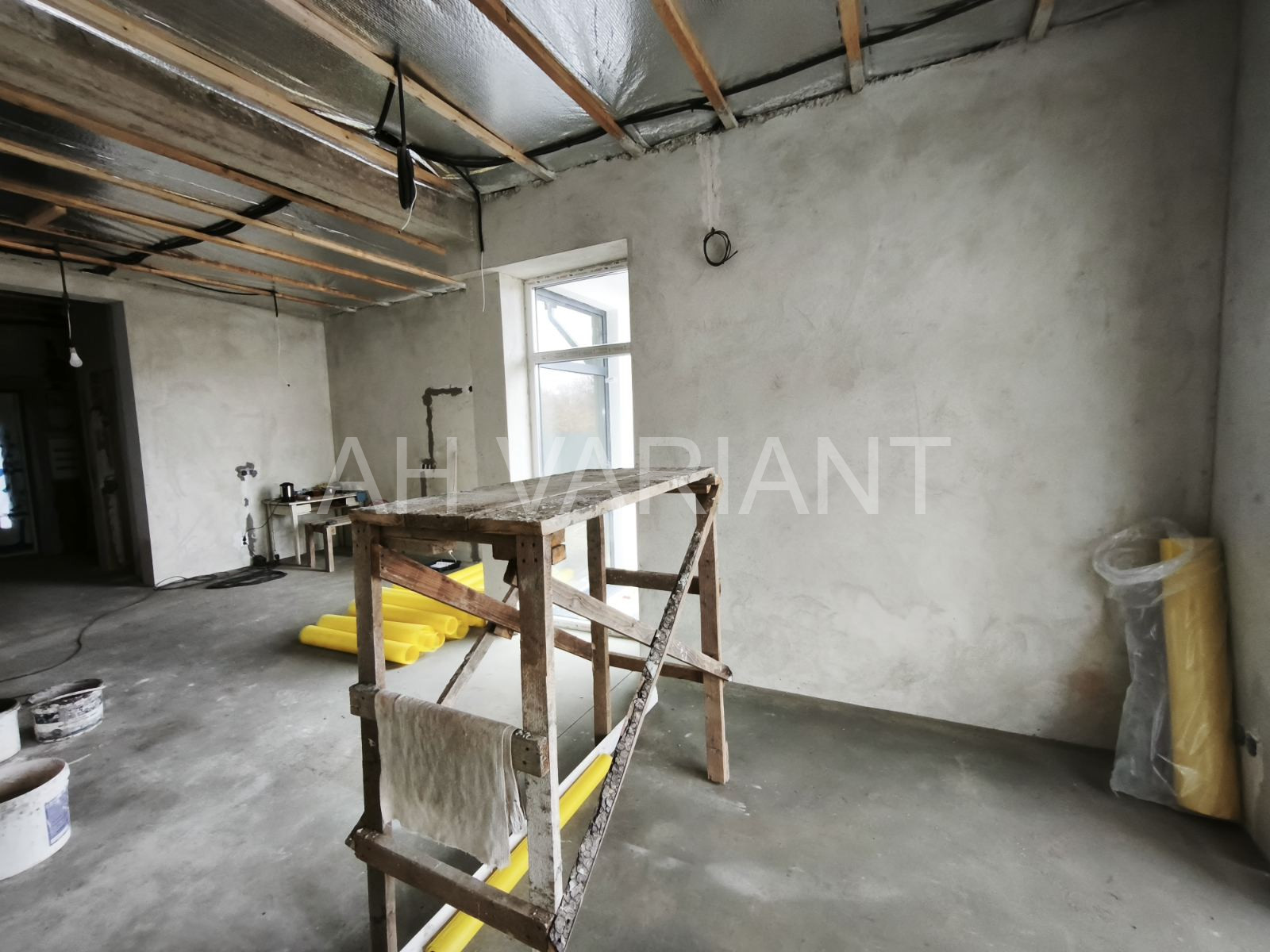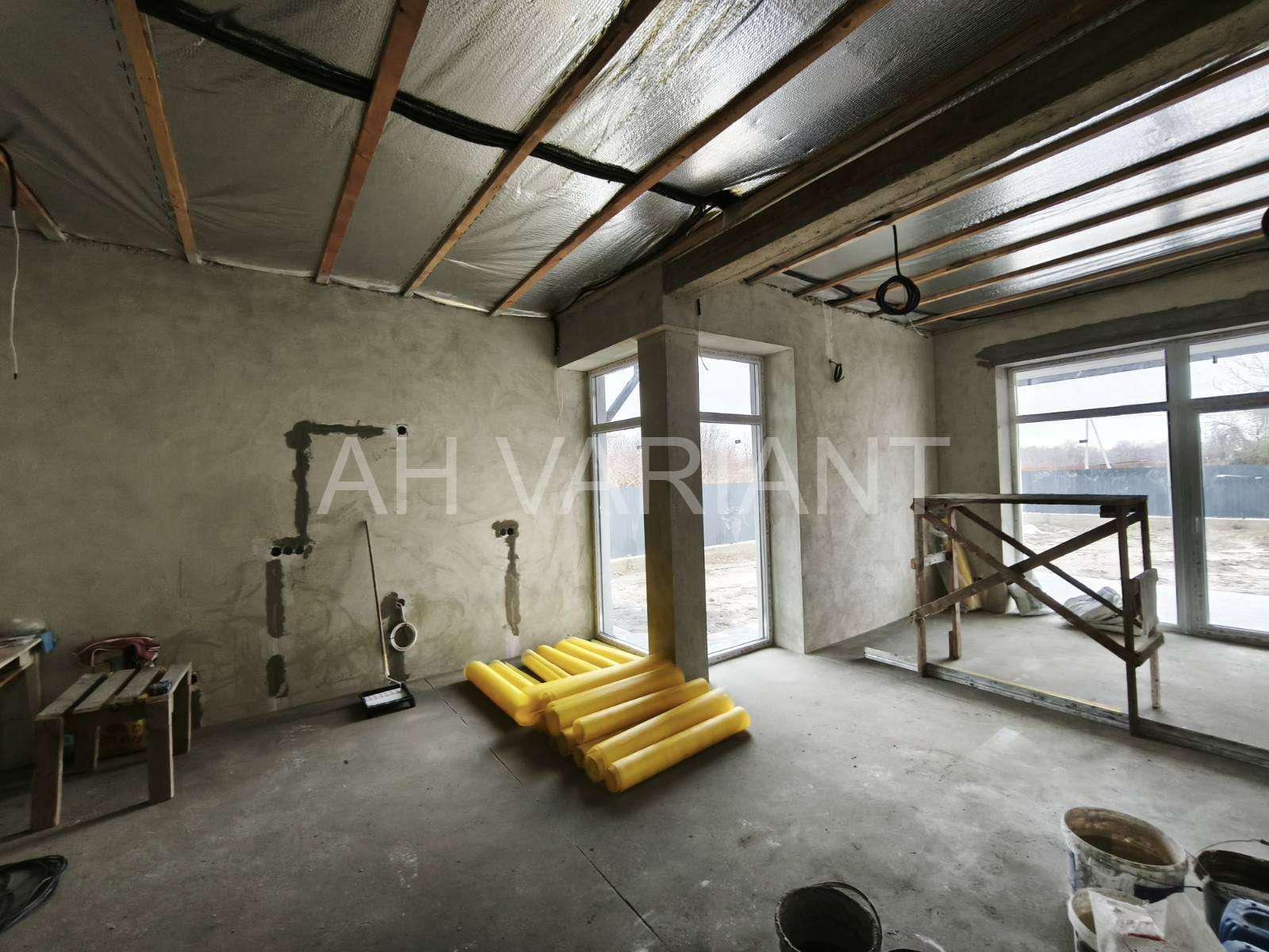 Всередині будинку розведена сантехніка, електрика, тепла підлога в ( коридорі, кухні-студія та санвузлі), чистова стяжка, внутрішні стіни та перегородки поштукатурені і пошпакльовані, встановлений (електрокотел, бойлер, радіатори), твердопаливний камін.
