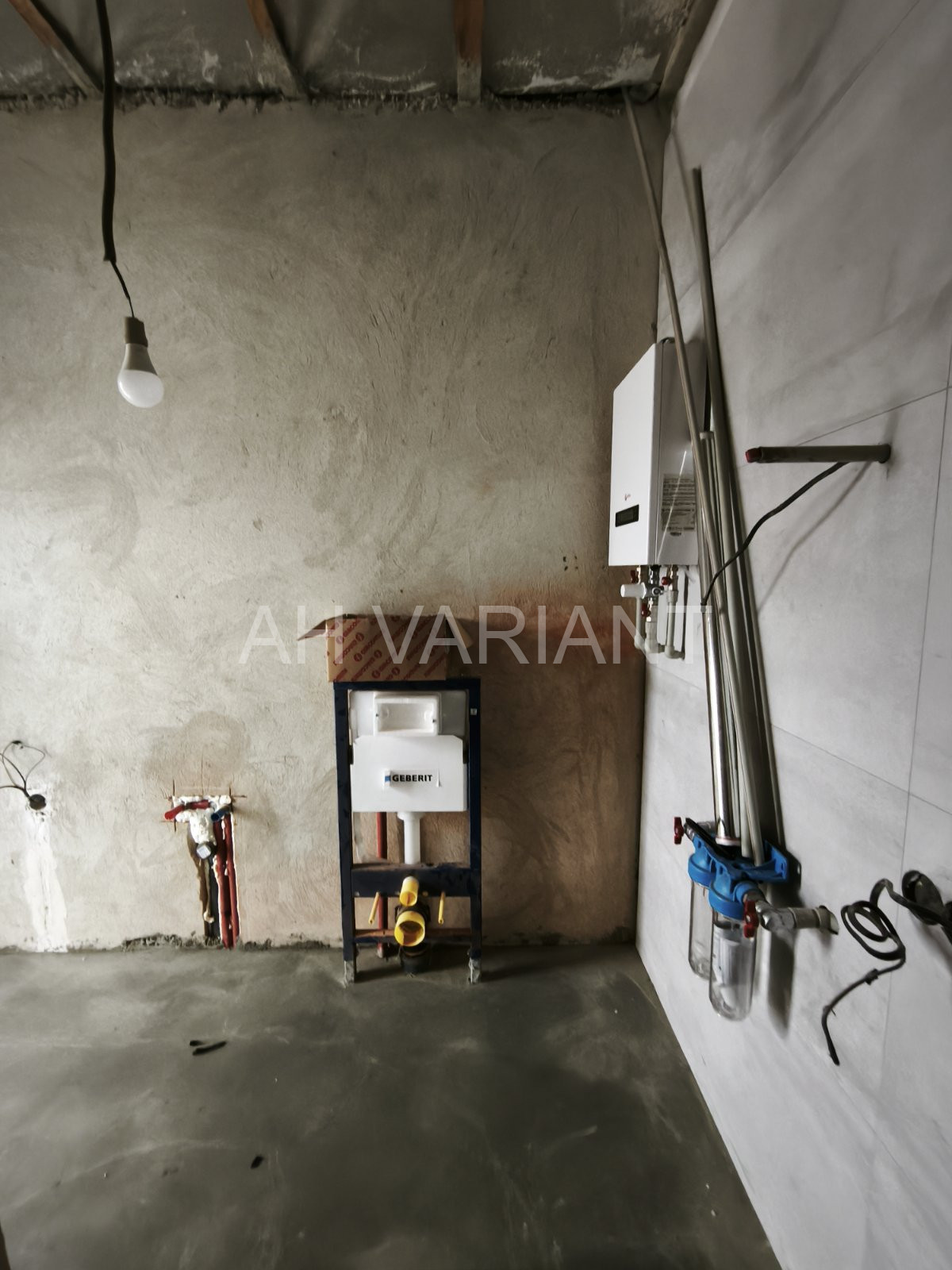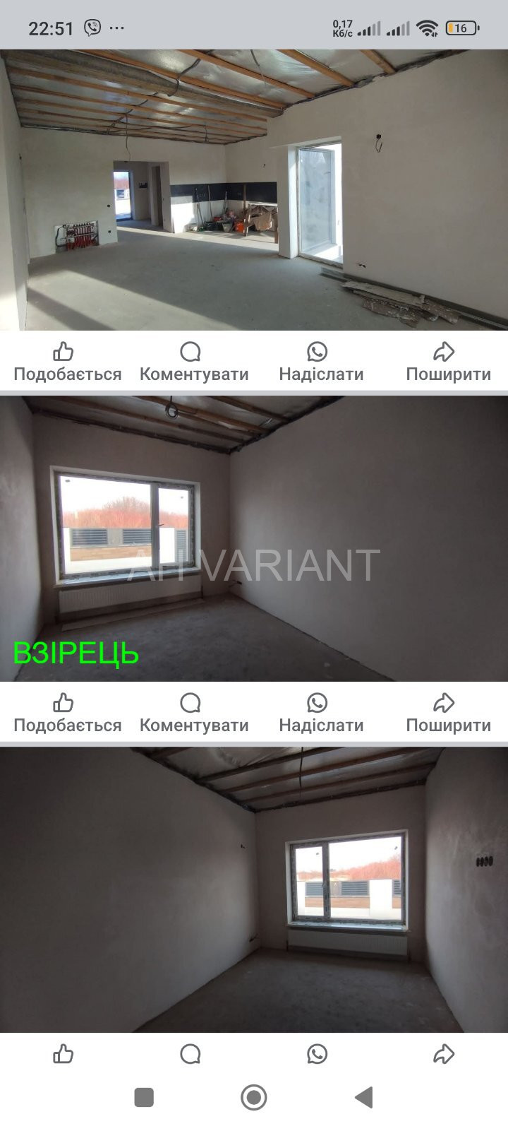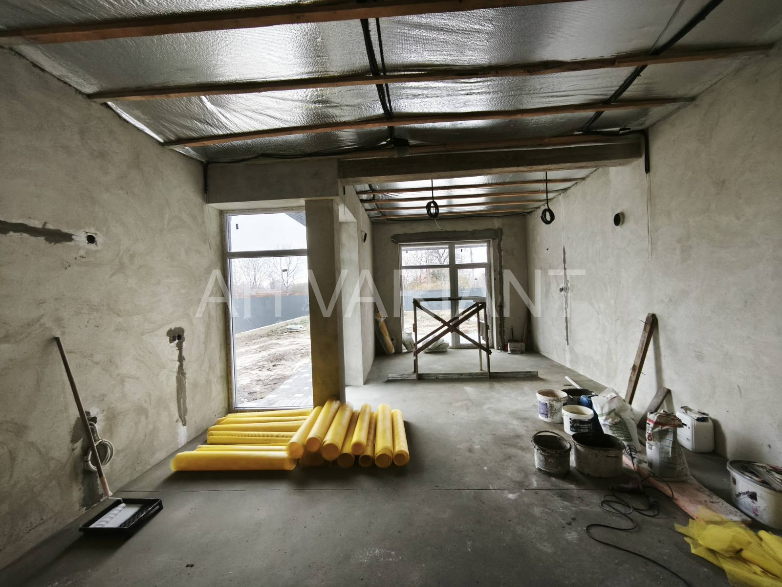 Всередині будинку розведена сантехніка, електрика, тепла підлога в ( коридорі, кухні-студія та санвузлі), чистова стяжка, внутрішні стіни та перегородки поштукатурені і пошпакльовані, встановлений (електрокотел, бойлер, радіатори), твердопаливний камін.