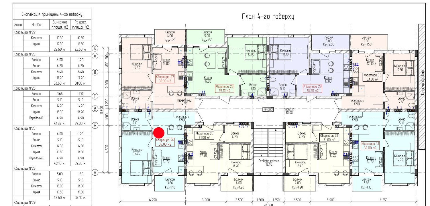 До вашої уваги пропонуємо квартиру на четвертому поверсі площею 39.1 м.кв.