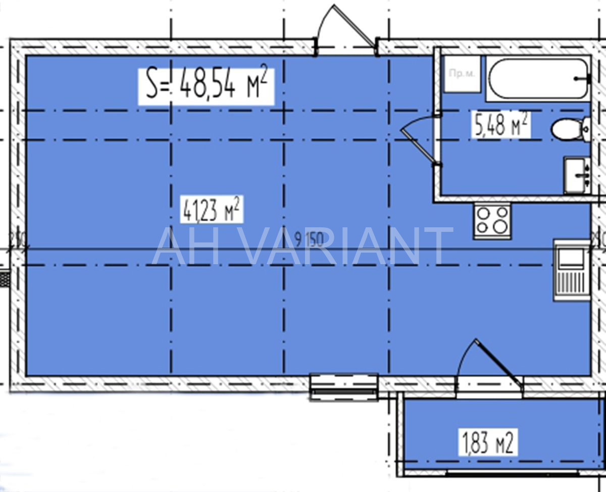 До вашої уваги пропонуємо квартиру на 4 поверсі, площею – 48.54 м.кв. Вільне планування.