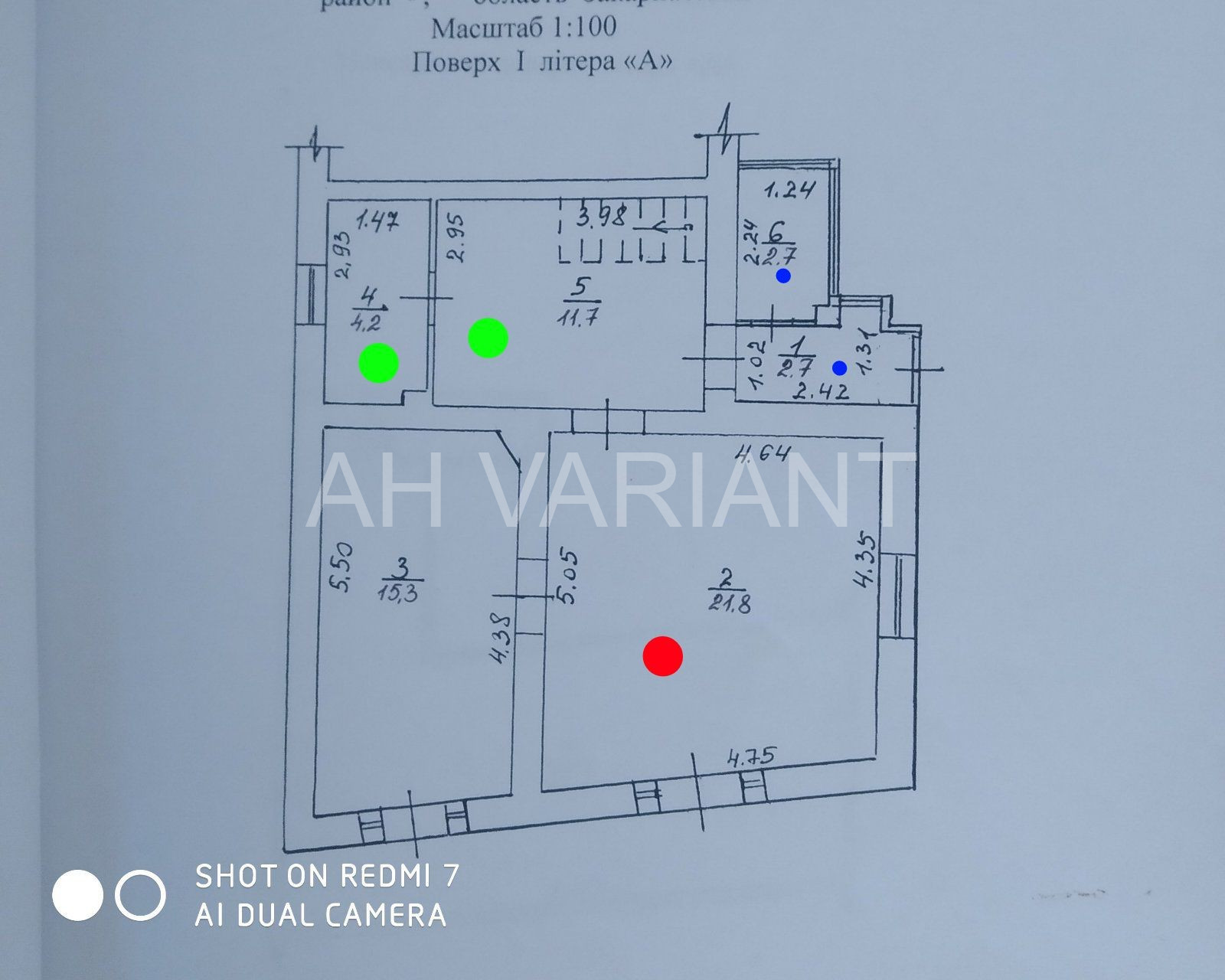 До вашої уваги пропонуємо кабінет площею 22 м.кв, позначено на плані червоною крапкою та 16 м.кв, позначено на плані зеленою крапкою.