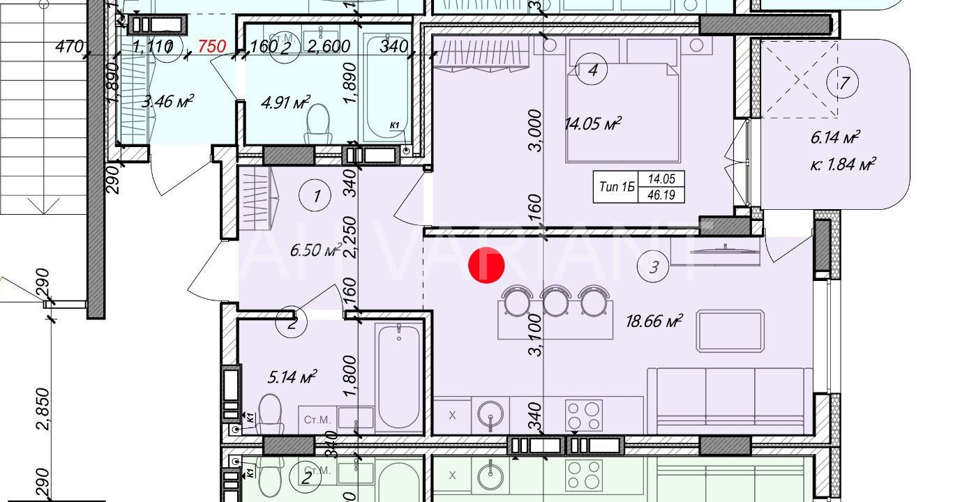 До вашої уваги пропонуємо квартиру півторашку площею 46.19 м.кв на п’ятому поверсі. Зручне та продумане планування.