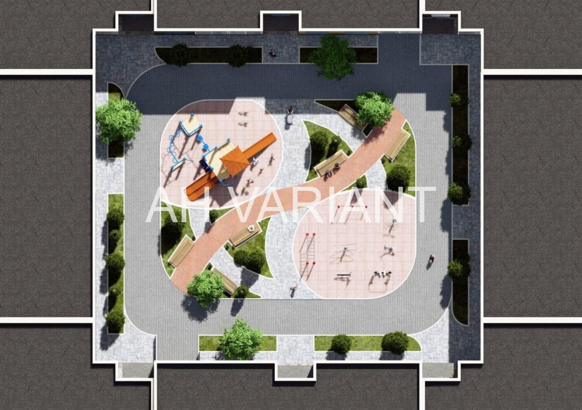 До вашої уваги пропонуємо квартиру площею 56 м.кв на першому поверсі, з виглядом на внутрішній дворик.