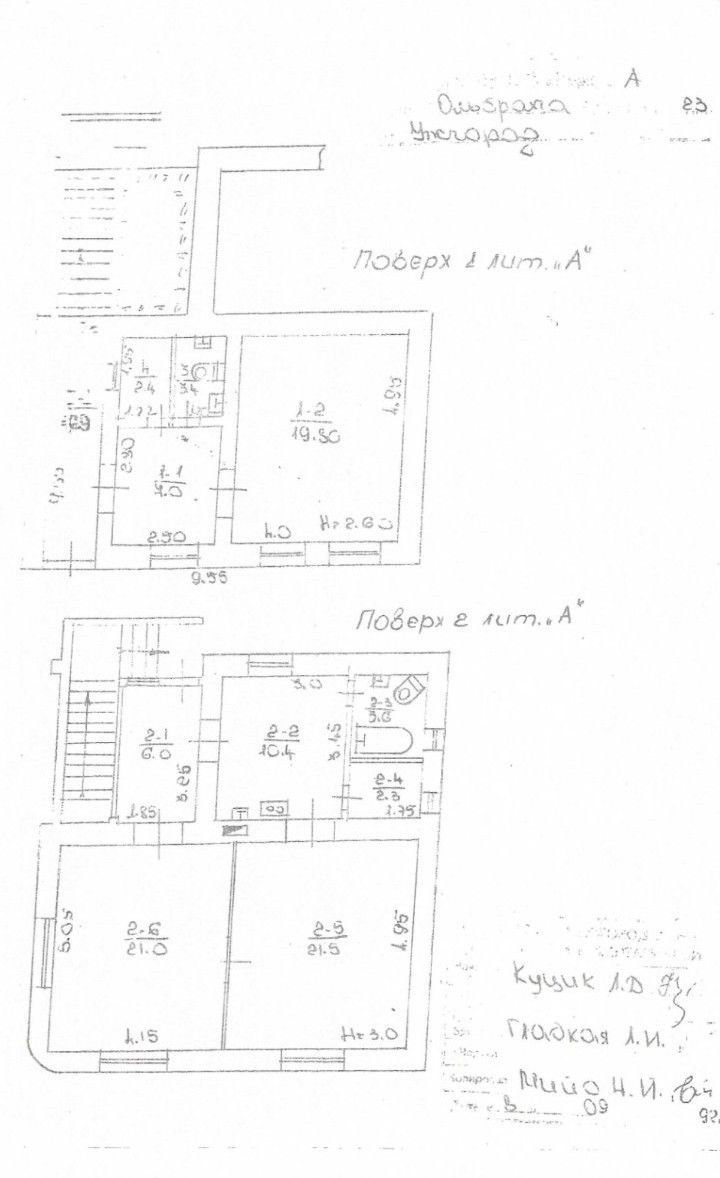 – другий поверх: прихожа, кухня, два санвузли, дві кімнати.