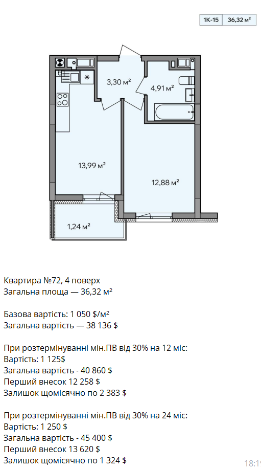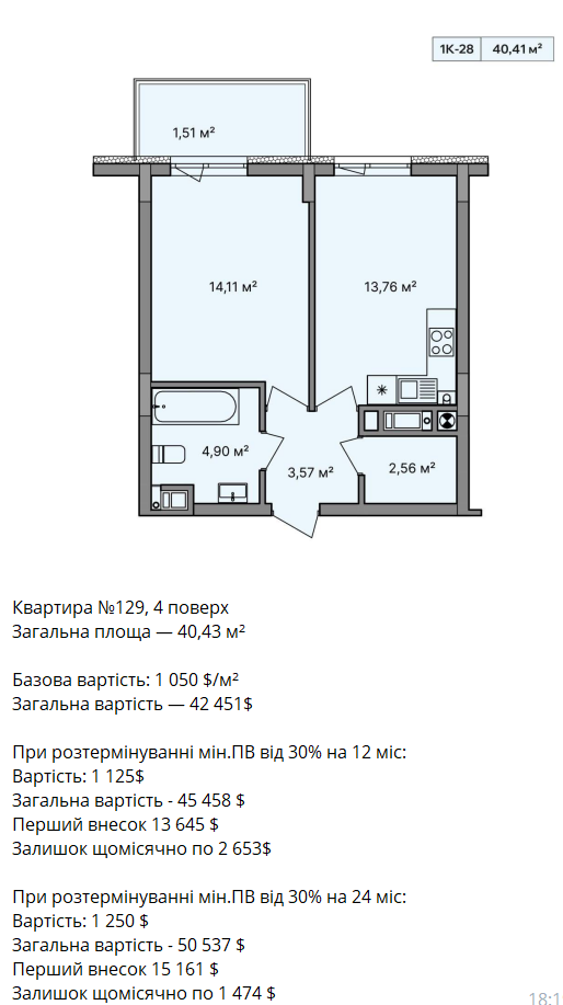 – Квартири 1050 $/м.кв. при 100% оплаті