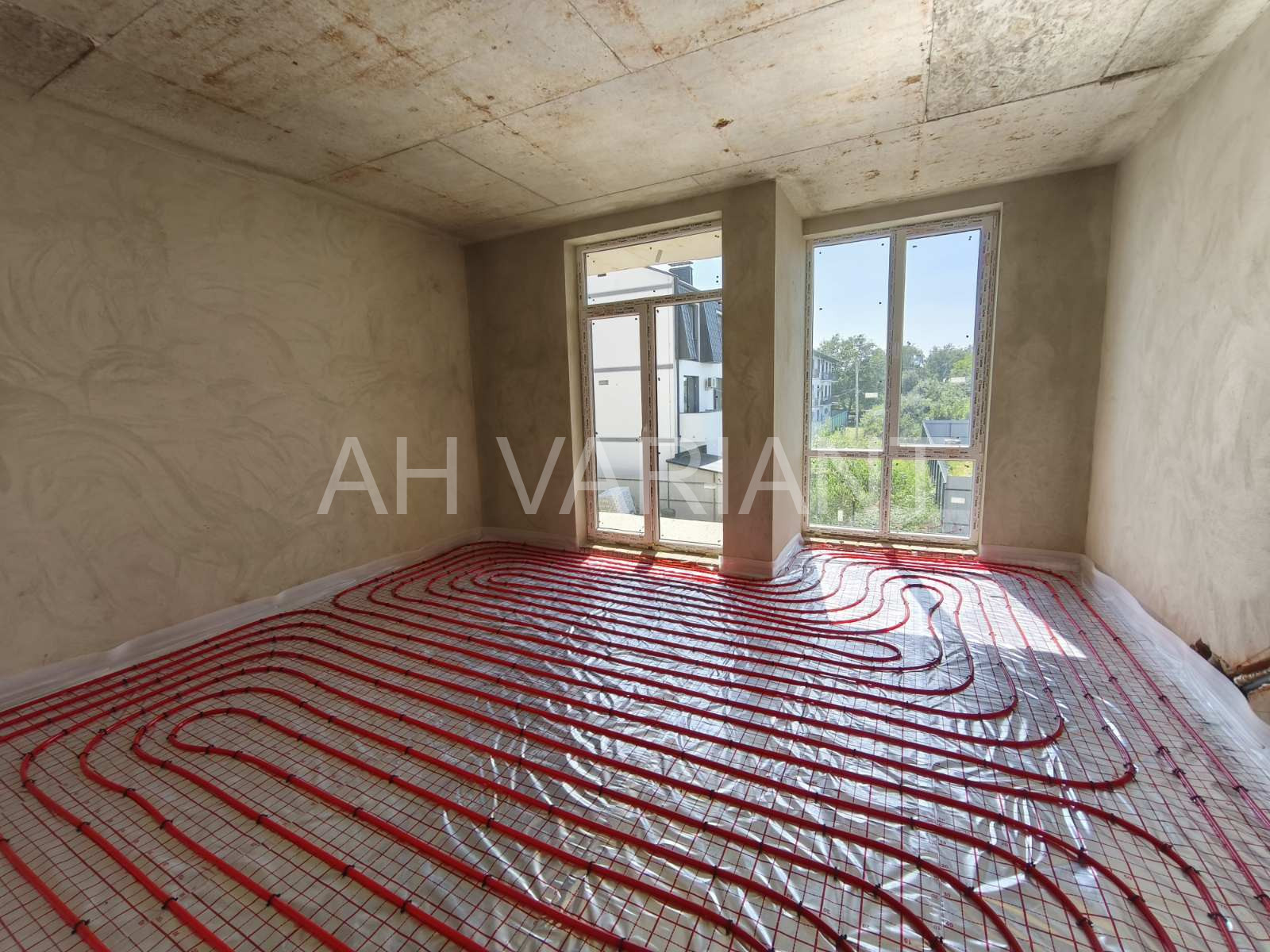 Всередині забудовником надається таке наповнення: тепла підлога та чистова стяжка по всій квартирі, стіни поштукатурені, розведена сантехніка, заведений силовий кабель з щитком та автоматом на котел, елетрокотел, якісні вхідні двері, встановлені та підключені лічильники (вода, світло).