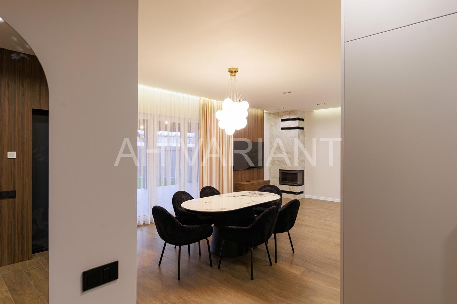У котеджі є камін із відповідним розведенням теплових рукавів по всіх спальних кімнатах.