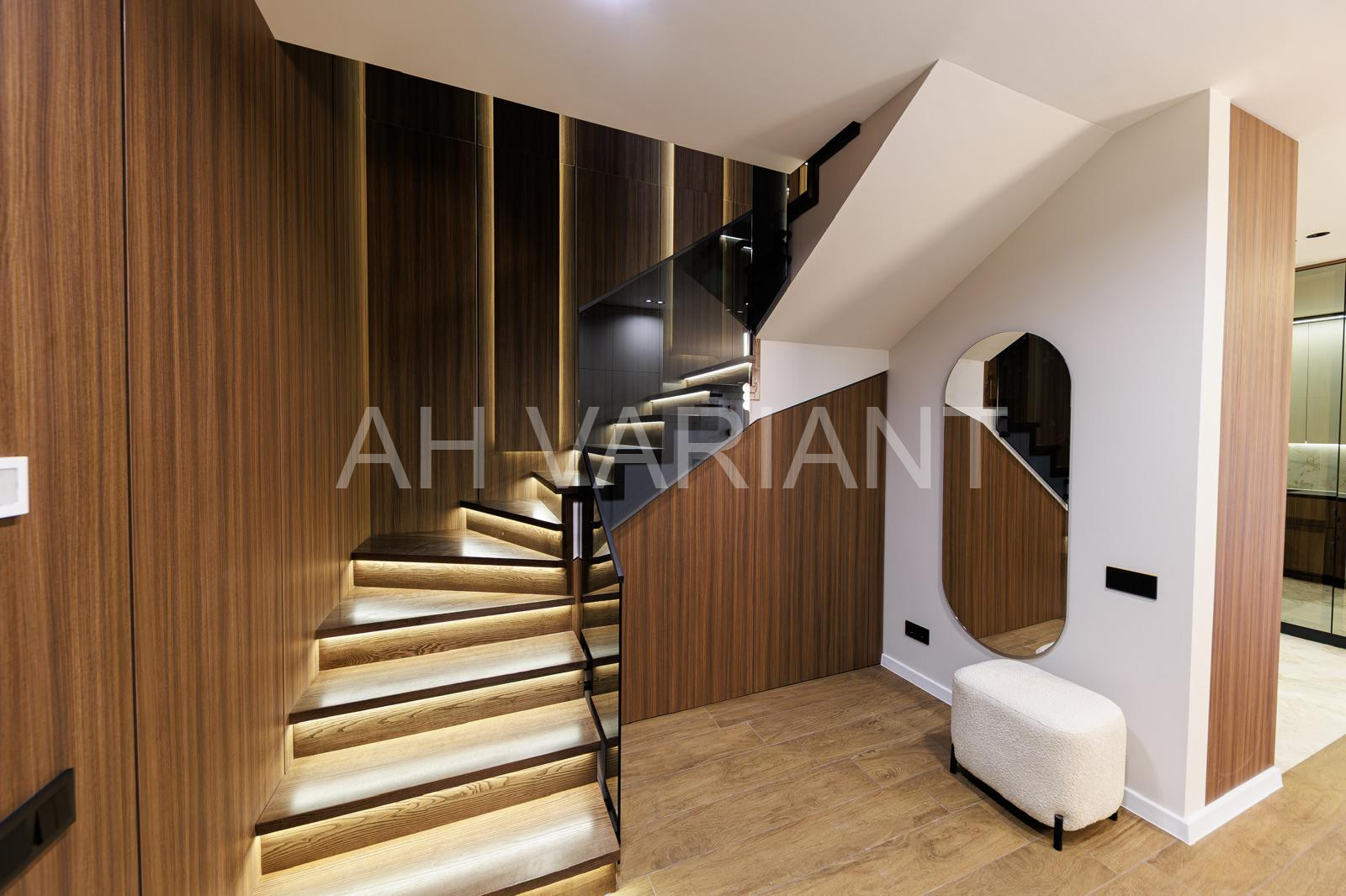 На 1 поверсі розміщена простора кухня-вітальня повністю обладнана всією сучасною вмонтованою побутовою технікою, великою відпочинковою зоною, санвузол. Також на 1 поверсі знаходиться вихід на простору терасу площею біля 50 м.кв.