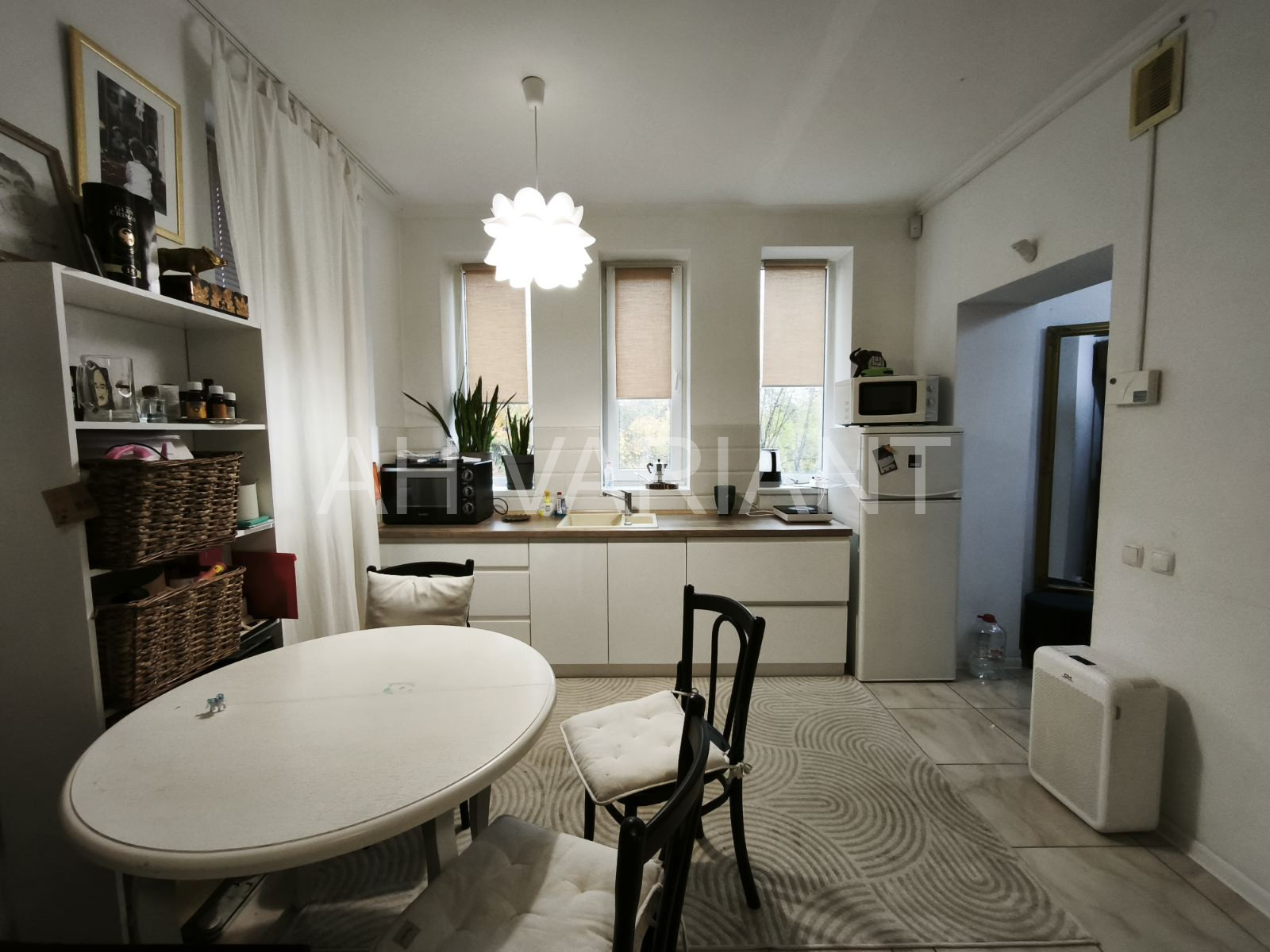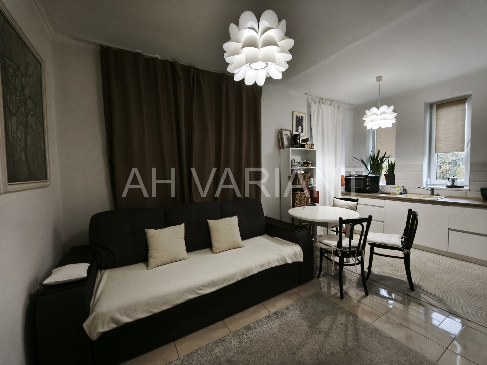 Зручне планування: кухня – студія, суміжний санвузол, простора спальня, закрита лоджія.