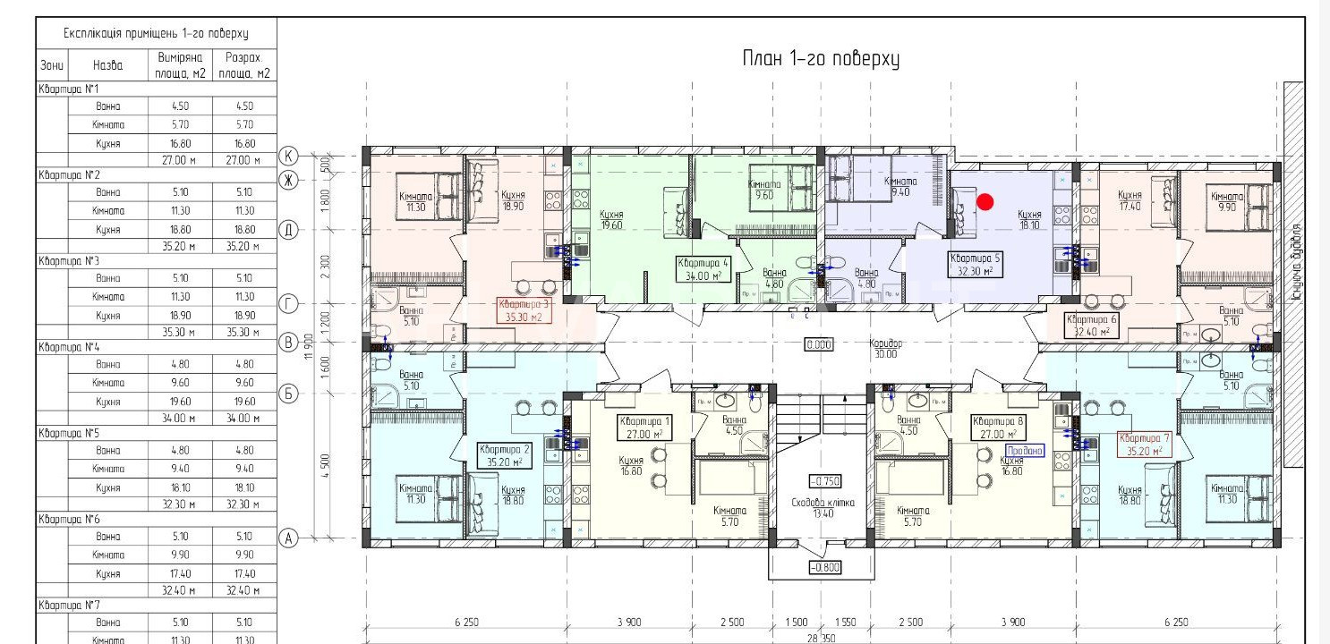До вашої уваги пропонуємо квартиру на першому поверсі площею 32.3 м.кв.