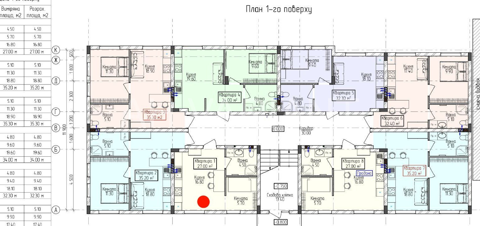 До вашої уваги пропонуємо квартиру на першому поверсі площею 27 м.кв.