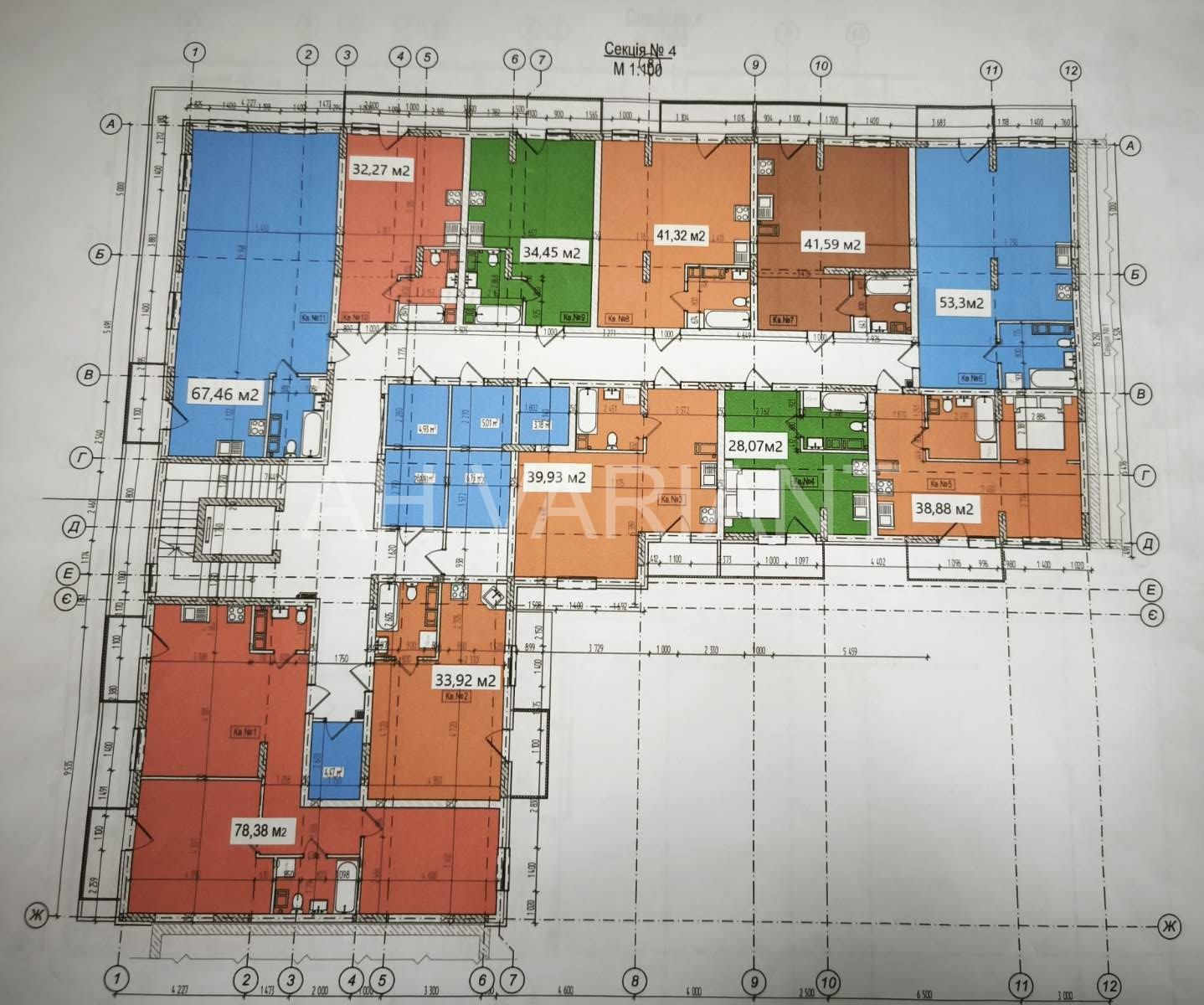 Площа: 28.07, 32.27, 33.92, 34.45, 38.88, 41.32, 41.59, 53.3, 67.46, 78.38 м.кв.