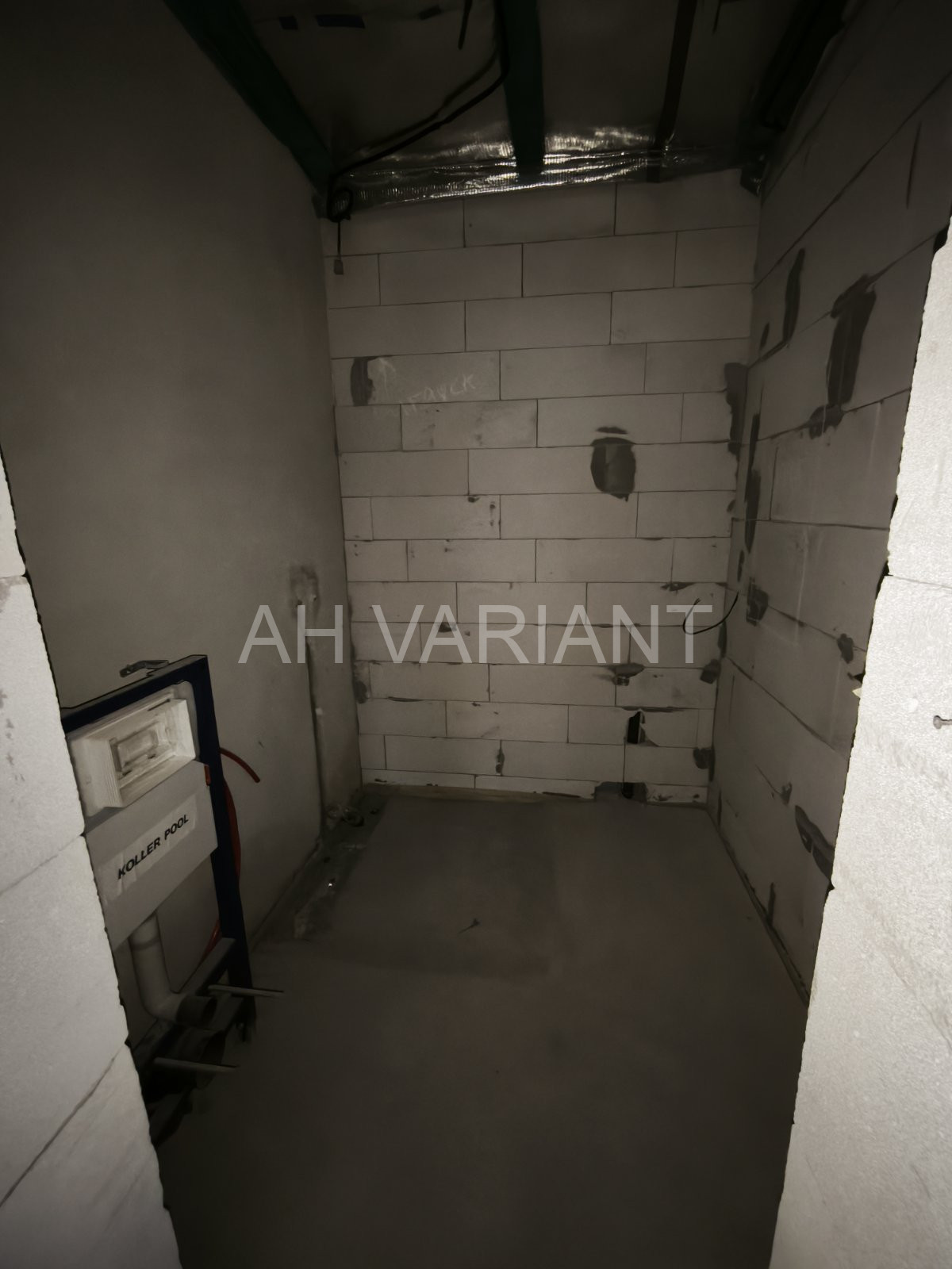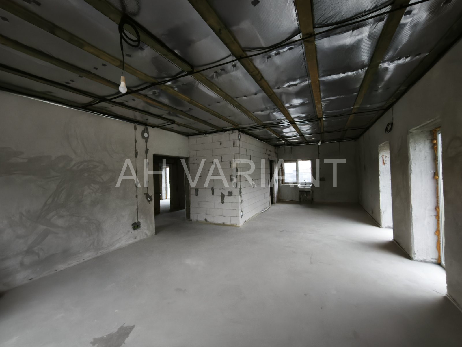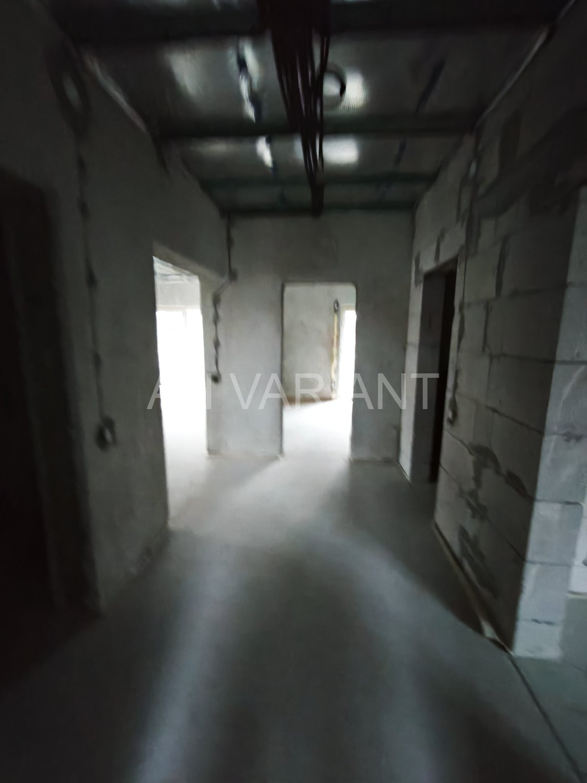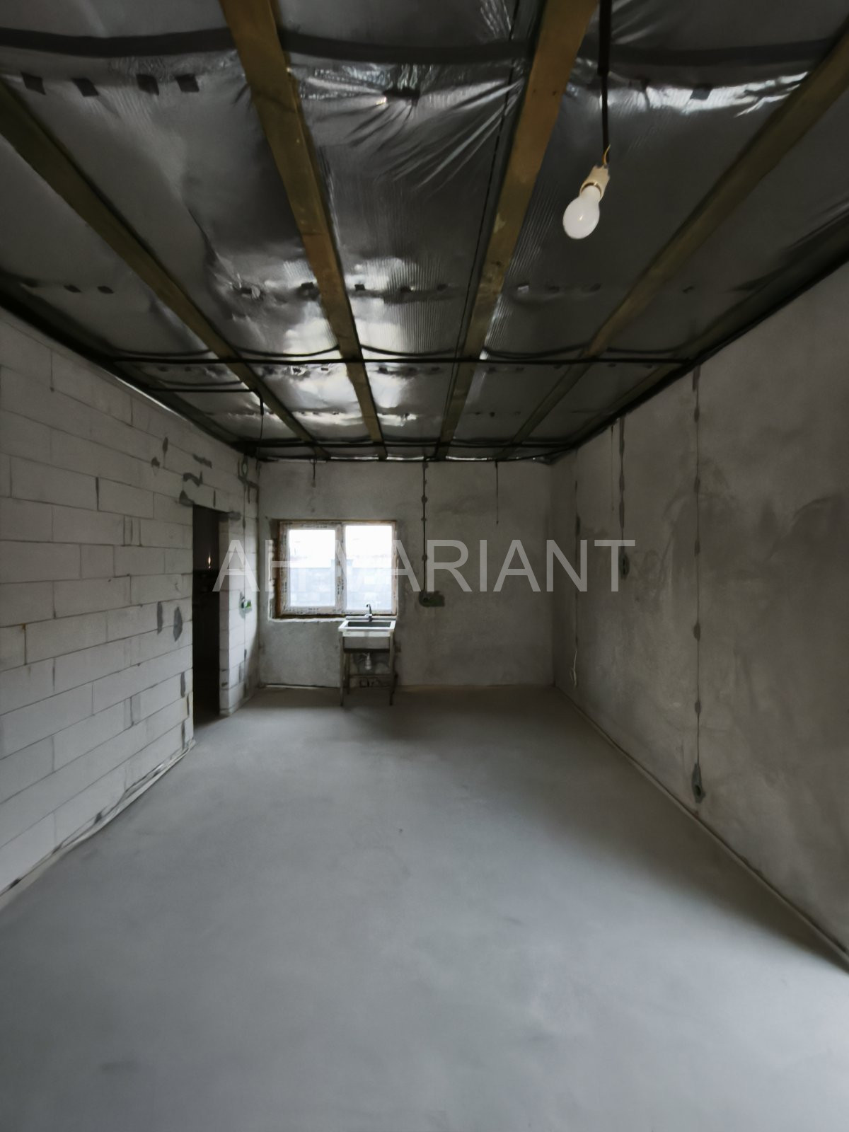 Всередині власники виконали таку роботу : розвели електрику та сантехніку, встановлено в санвузлах інсталяції з унітазами, встановлено електрокотел та електробойлер, гребінка з теплою підлогою по всьому будинку крім кімнат, в кімнатах батареї, встановлено твердопаливний камін ( 12 кіловат), чистова стяжка.