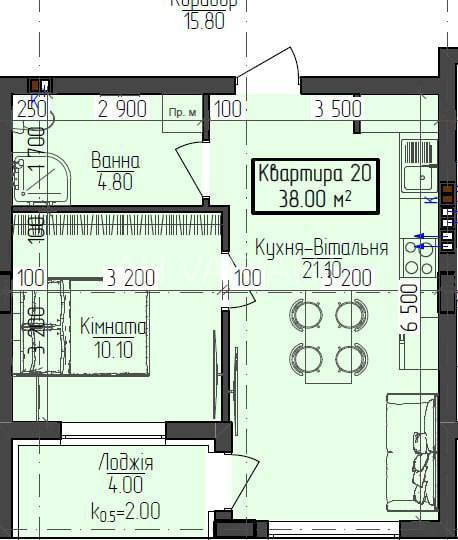 До вашої уваги пропонуємо квартиру площею 38 м.кв на першому поверсі, з виглядом на котеджне містечко.