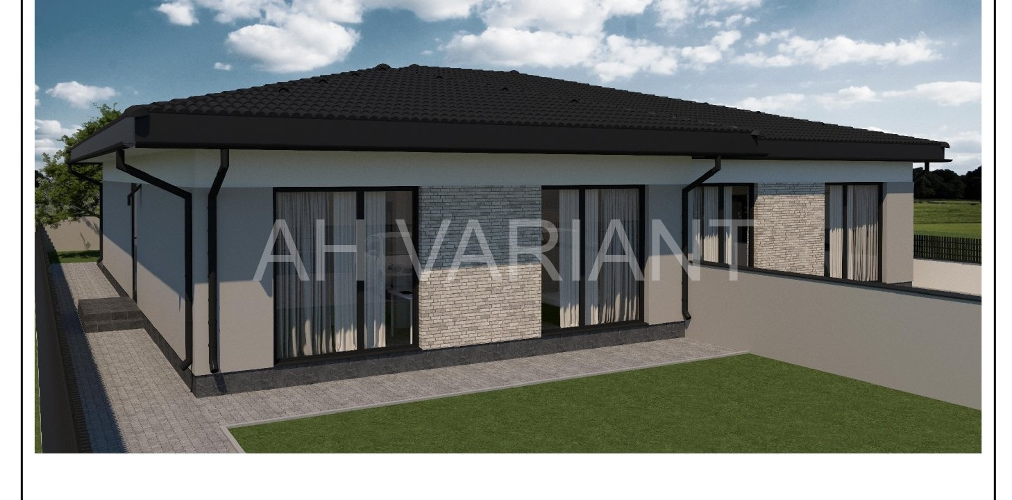 – Зовні будинок буде побудований із цегли + утеплений 10 см пінопластом, вікна панорамні- шестикамерні, якісні сертифіковані вхідні двері, дах покритий металочерепицею та утеплений 25 см мінватою.