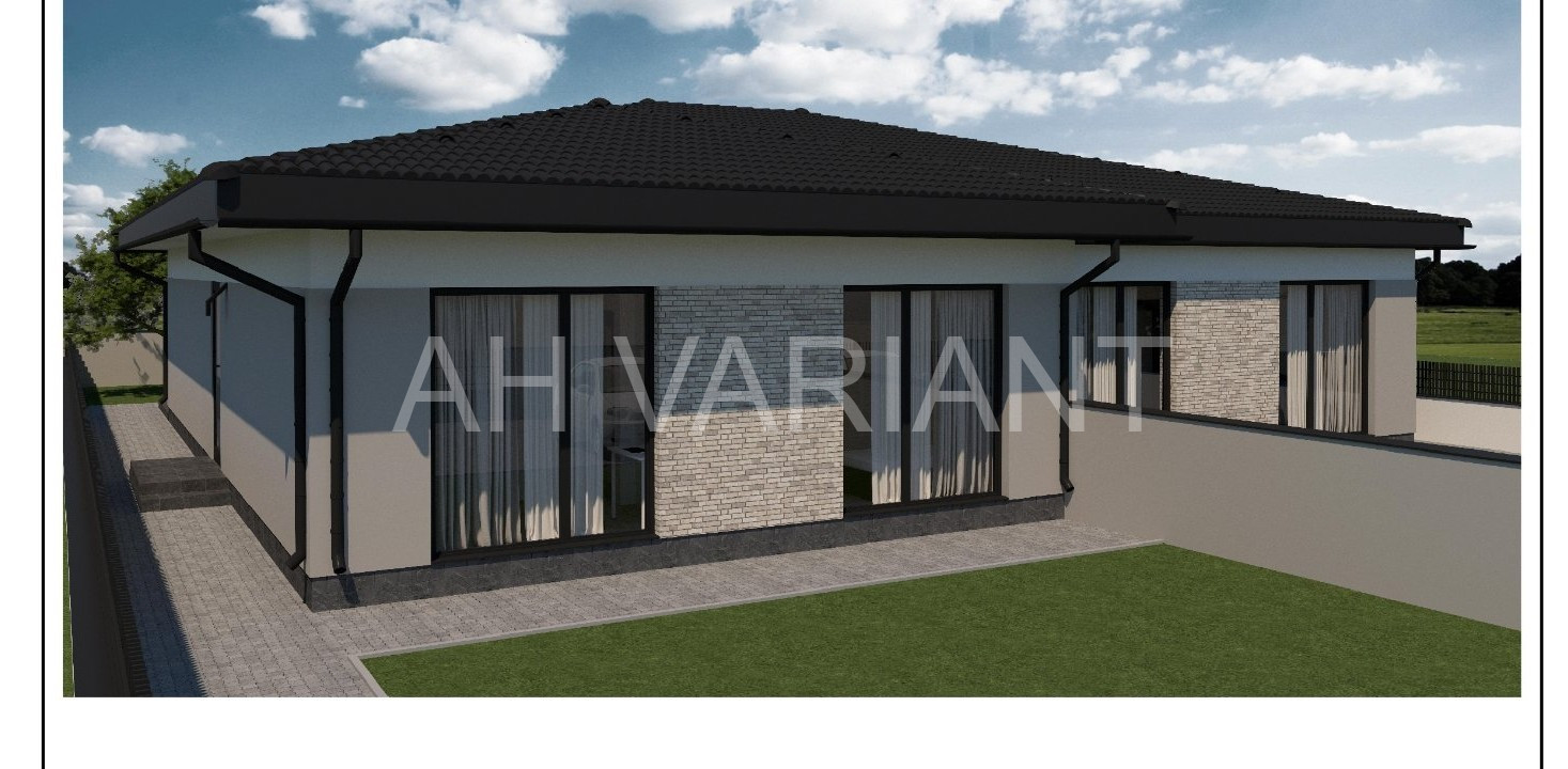 – Зовні будинок буде побудований із цегли + утеплений 10 см пінопластом, вікна панорамні- шестикамерні, якісні сертифіковані вхідні двері, дах покритий металочерепицею та утеплений 25 см мінватою.